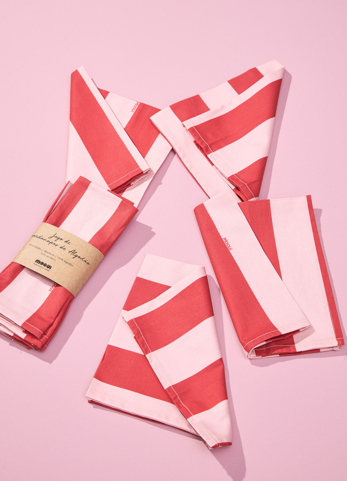 O Jogo de Guardanapos Listrado Cerejeira é indispensável para uma Mesa Posta elegante. Feito 100% algodão que garante a qualidade na hora do uso, elegante e versátil, é também uma opçõa muito mais sustentável que o guardanapo de papel. O jogo é composto por 6 ou 8 guardanapos da mesma estampa. Experimente combinar os guardanapos com os demais itens de Mesa Posta da MOOUI para montar uma mesa original, charmosa e encantadora.