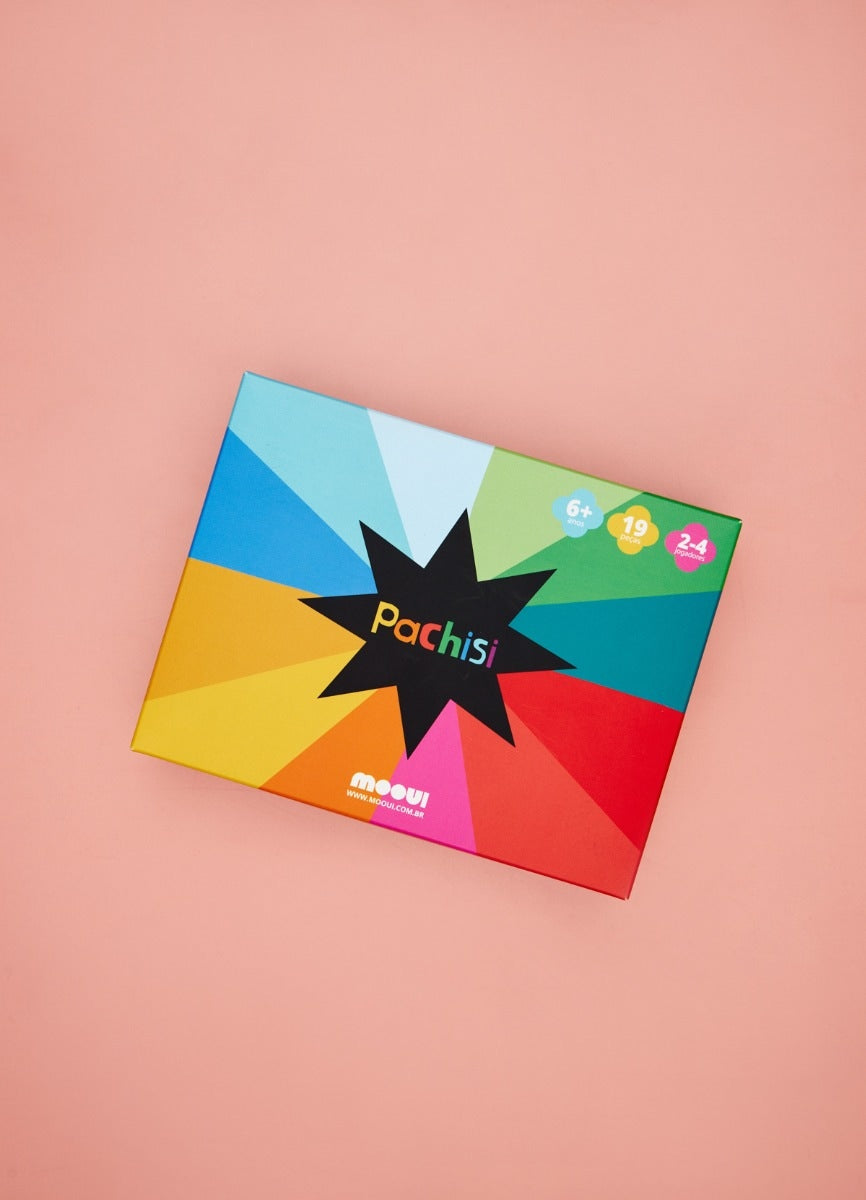 O pachisi é um jogo de tabuleiro de até 4 jogadores. Cada um dos jogadores escolhe uma cor, coloca suas quatro peças dentro da casa correspondente e se senta em frente a essa cor com a área de partida a sua direita. Ganha o jogador que levar suas 4 peças à chegada primeiro! Um jogo divertido que toda a sua família vai amar com o design colorido da MOOUI. O Jogo acompanha tabuleiro de tecido, dois dados, 16 pinos e instruções para a sua diversão.
