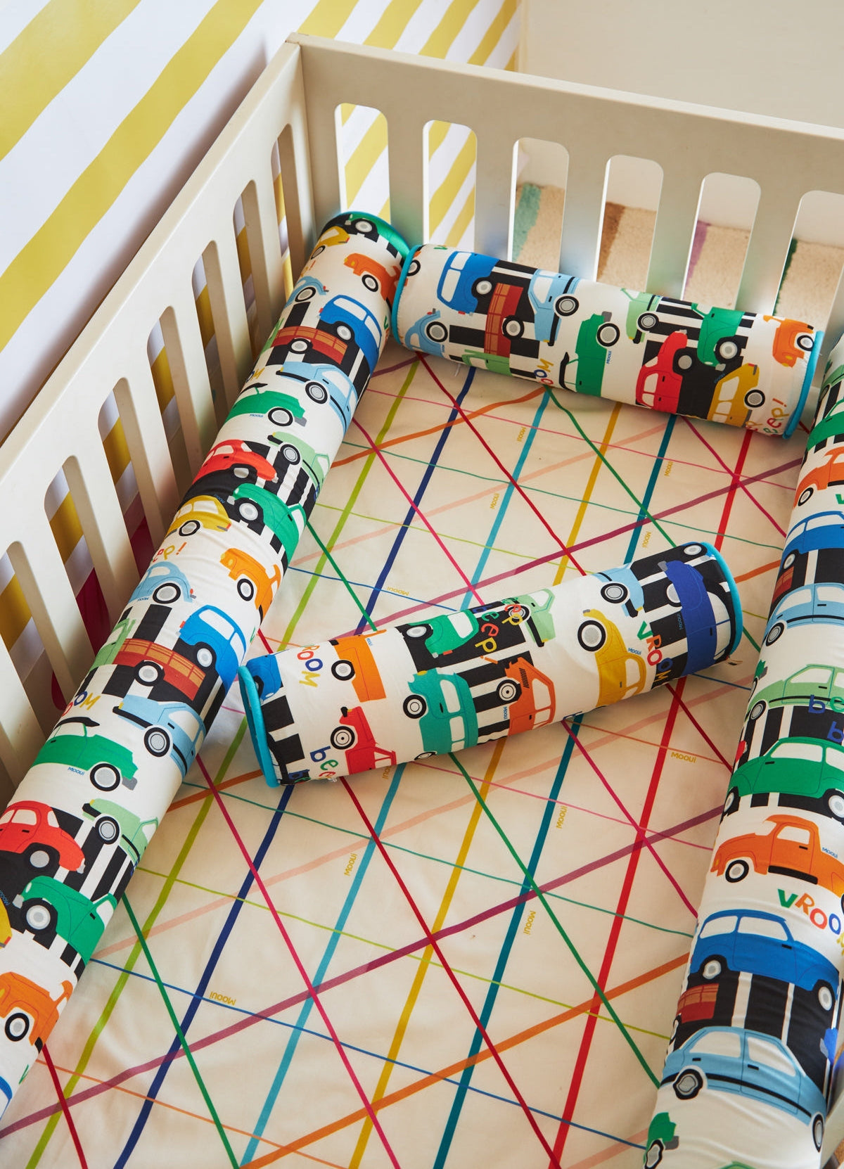 O Kit Berço Rolinhos Carros do Vovô é composto por 4 rolos, sendo 2 grandes e 2 pequenos, que protegem o bebê das grades do berço. Além de oferecer segurança, ele também é a escolha perfeita para deixar o berço cheio de charme com a estampa exclusiva MOOUI. As capas, confeccionadas em algodão, têm fechamento em zíper, para facilitar a remoção e higienização das peças.