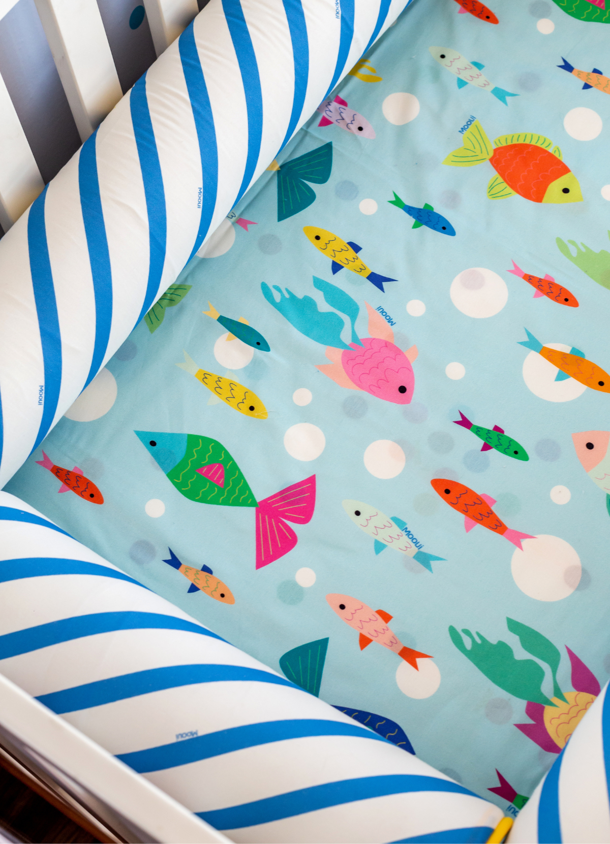 Suas capas em algodão certificado STANDARD 100 pela OEKO-TEX® possuem zíper para fácil remoção e higienização. Este kit combina segurança com as estampas exclusivas MOOUI, trazendo charme e personalidade para o ambiente do bebê.