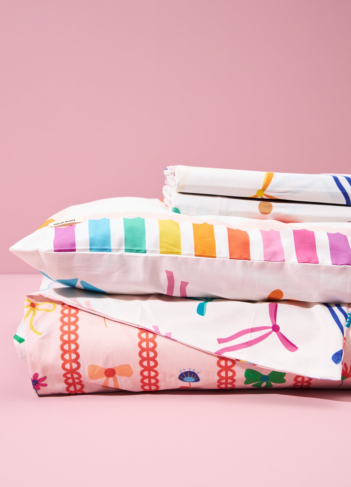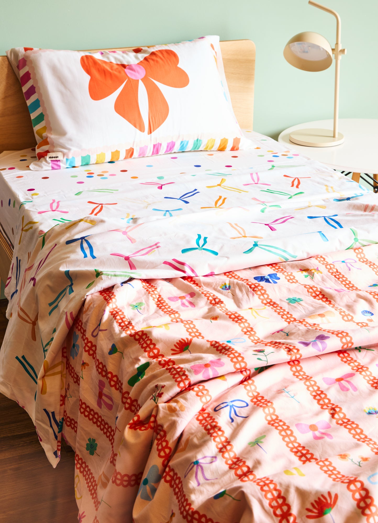 O Kit Cama Completo Solteiro Laços de Amizade da MOOUI reúne cinco peças essenciais que transformam o quarto infantil com um mix de estampas coordenadas e cheias de personalidade. Este conjunto completo proporciona praticidade aos pais e uma experiência de sono totalmente renovada para as crianças.
