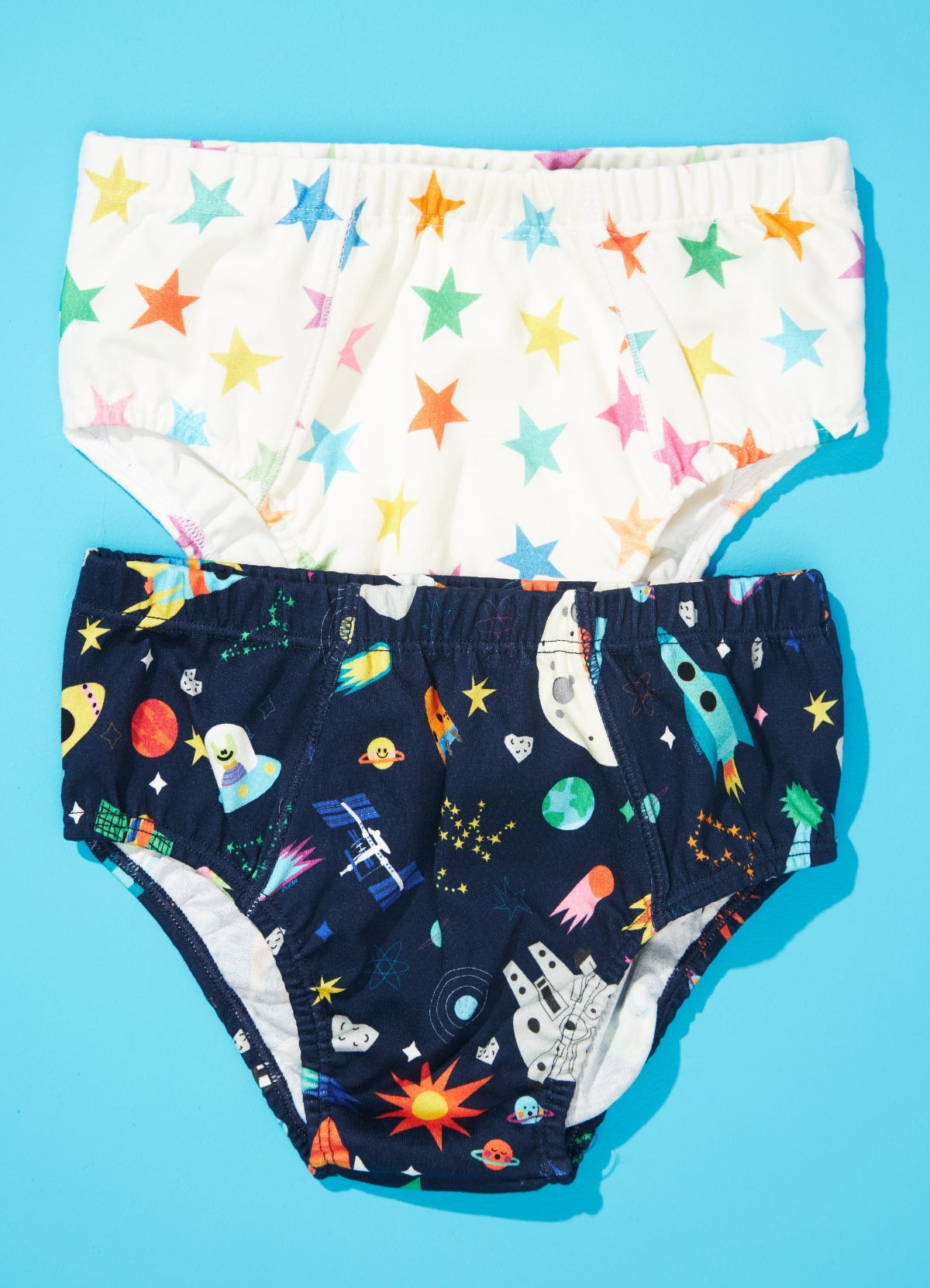O Kit de Cuecas Corrida Espacial é o detalhe que faltava para o dia-a-dia dos meninos ficar mais colorido e alegre. As cuecas infantis são feitas com suedine de algodão e elástico elástico embutido nas bordas para se encaixar perfeitamente no corpo da criança, permitindo que ela esteja confortável e protegida o tempo todo.