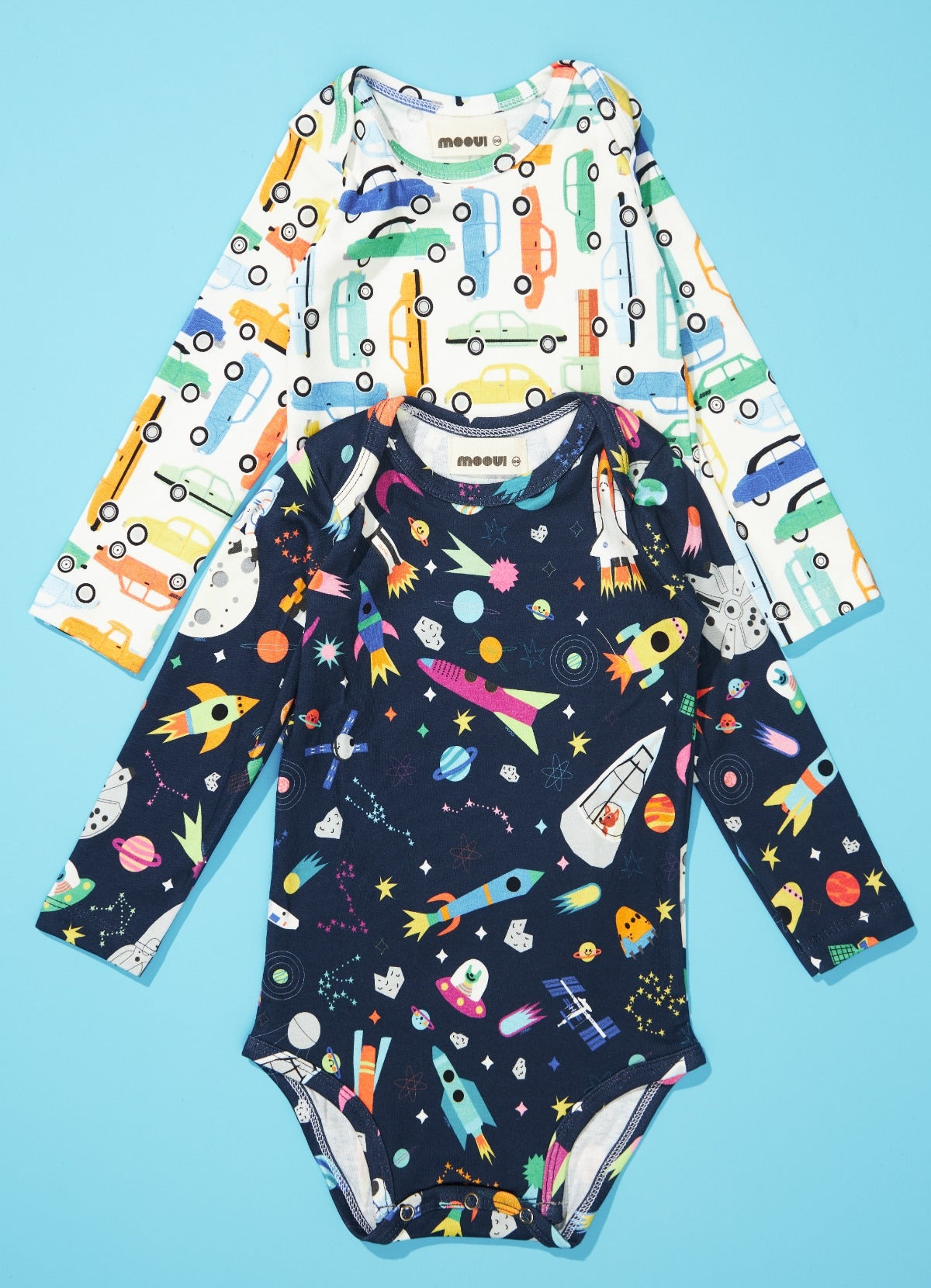O Kit Duo Body Manga Longa para Bebê Corrida Espacial traz a combinação de 2 peças com as estampas exclusivas da MOOUI para vestir os pequenos. Perfeito para incluir no enxoval do bebê ou até mesmo presentear. O body permite amplitude nos movimentos, para que o bebê possa explorar e fazer suas primeiras descobertas. Confeccionado em malha suedine de algodão, o body de bebê é super macio e confortável, transmitindo amor e carinho ao vestir.