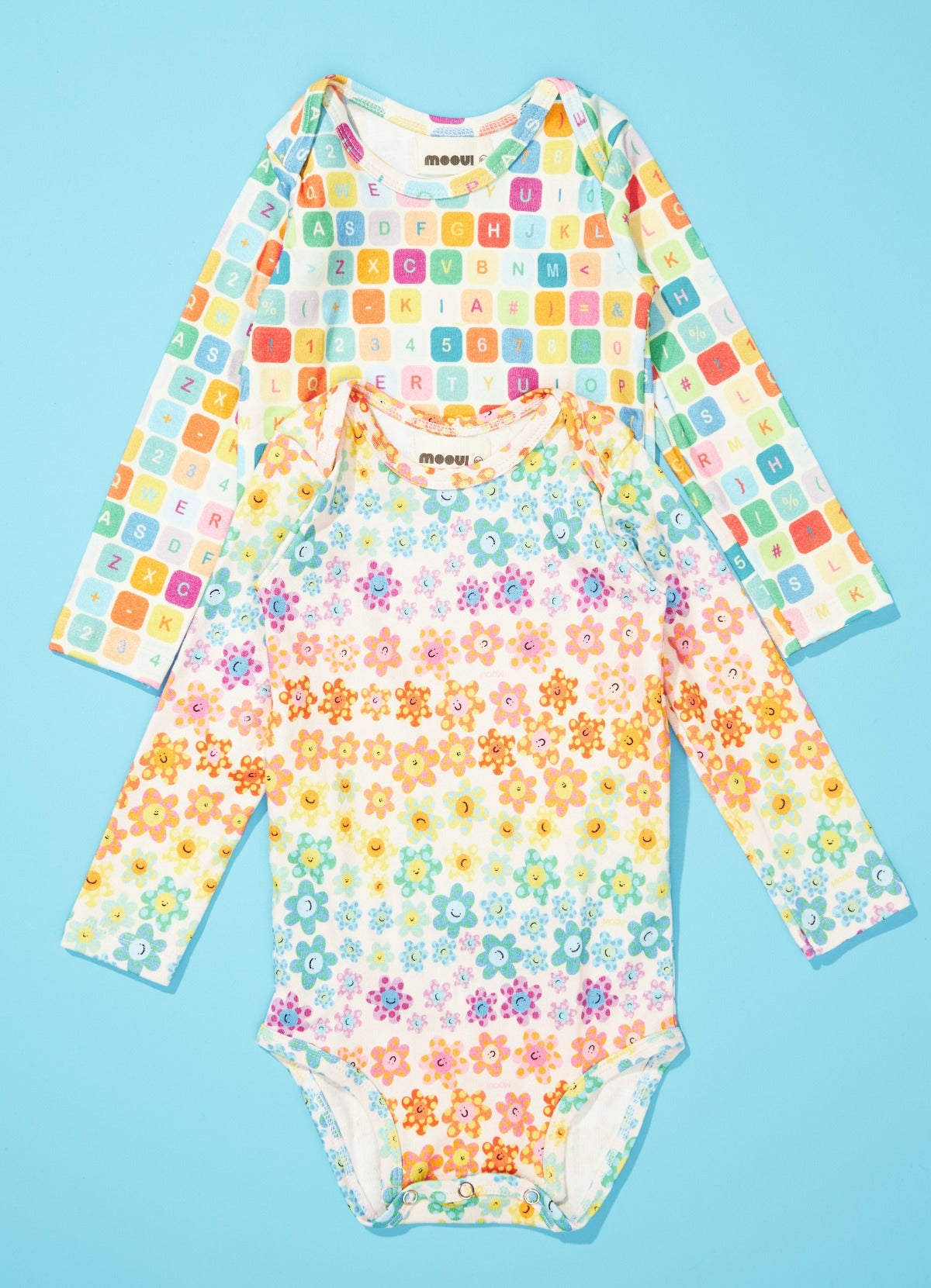 O Kit Duo Body Manga Longa para Bebê Happy Flowers traz a combinação de 2 peças com as estampas exclusivas da MOOUI para vestir os pequenos. Perfeito para incluir no enxoval do bebê ou até mesmo presentear. O body permite amplitude nos movimentos, para que o bebê possa explorar e fazer suas primeiras descobertas. Confeccionado em malha suedine de algodão, o body de bebê é super macio e confortável, transmitindo amor e carinho ao vestir.