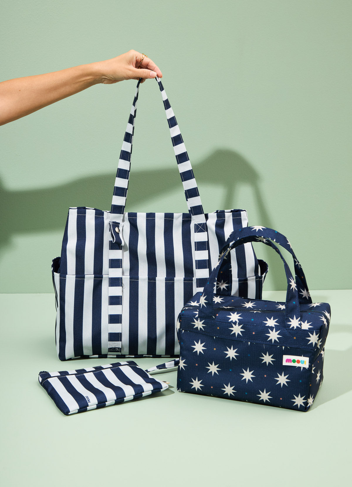 O Kit de Praia – Listrado Azul é o combo perfeito para dias de sol cheios de cor e praticidade! Composto por 1 Bolsa de Praia Grande, 1 Bolsa Térmica e 1 Necessaire 2 Bolsos, ele traz tudo o que você precisa para curtir o verão com estilo. As peças contam com a estampa exclusiva Mooui Listrado Azul, e foram pensadas para unir beleza, funcionalidade e conforto — ideais para levar seus itens de forma organizada, mantendo o charme em qualquer ocasião.