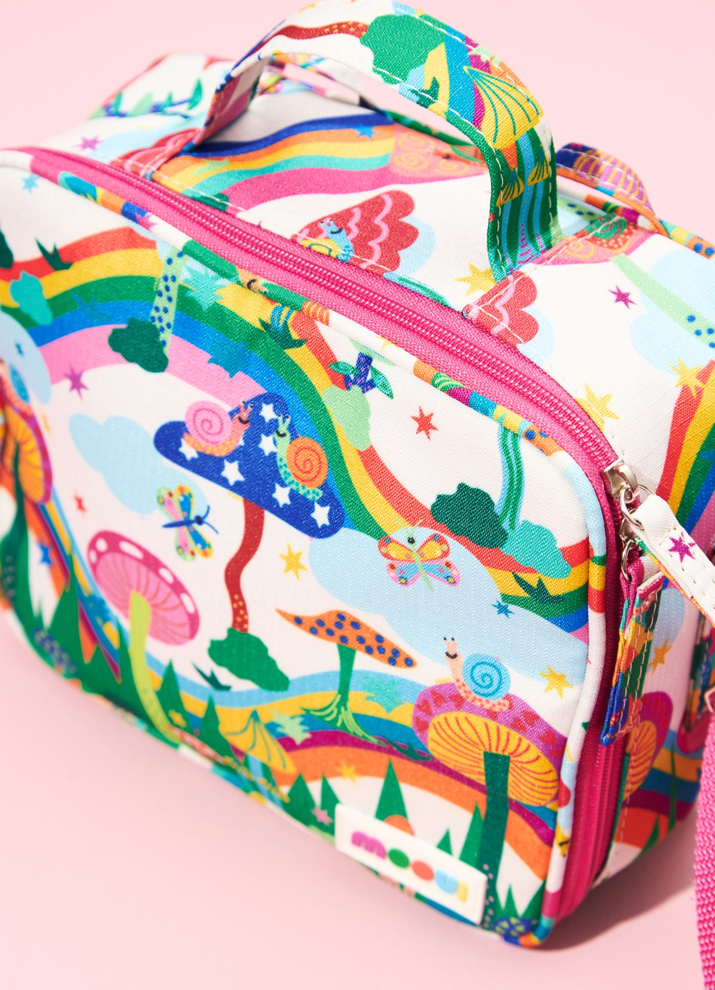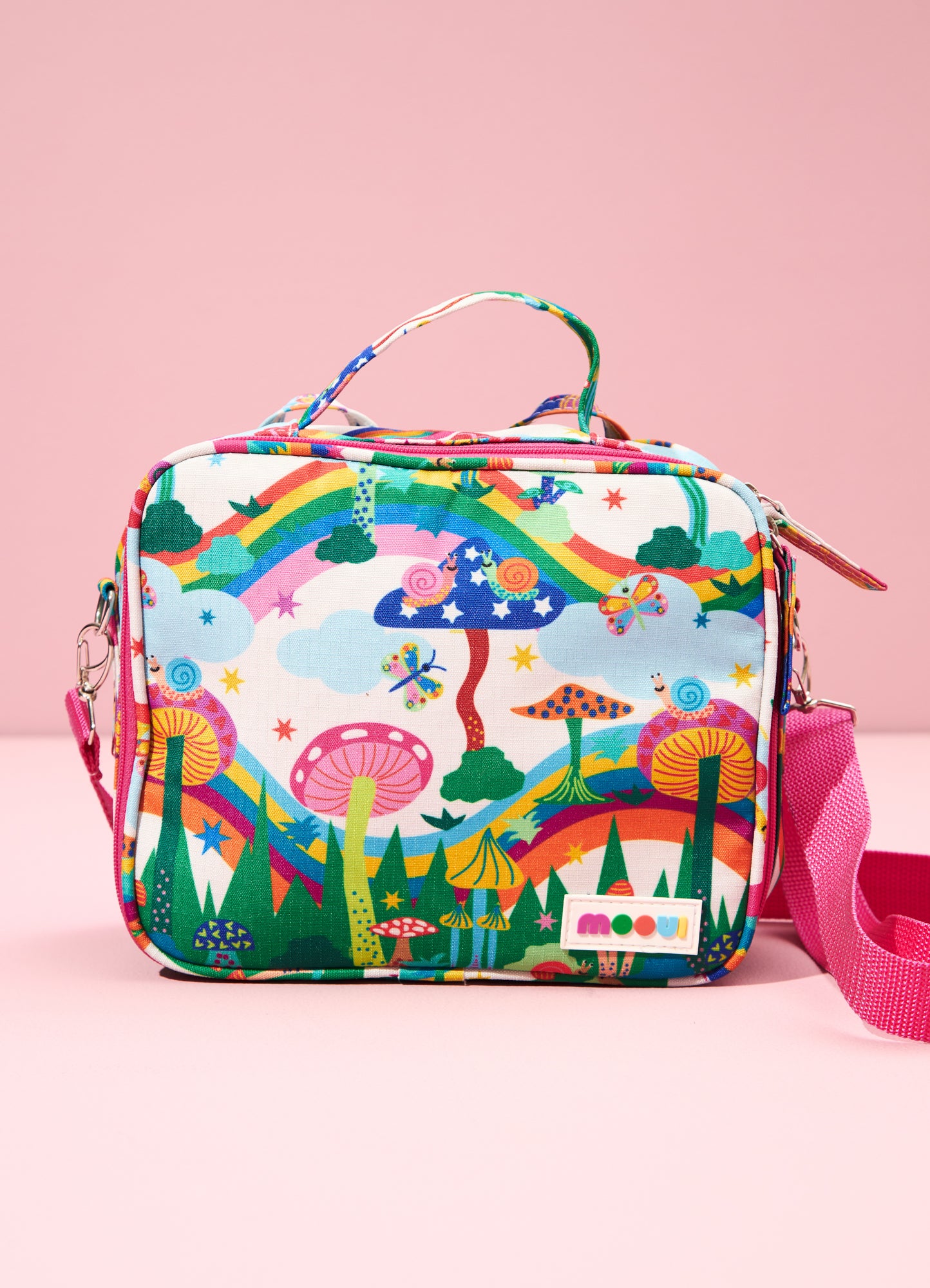 A Lancheira Infantil Festa de Cogumelos foi desenvolvida para servir as crianças de maneira confortável e prática, aliando espaço, versatilidade e estilo numa única peça. Com estampa exclusiva MOOUI e material resistente para poder carregar tudo o que se precisa para ir à escola, fazer um passeio, praticar uma atividade física ou realizar outras atividades com tranquilidade, com muito mais charme.