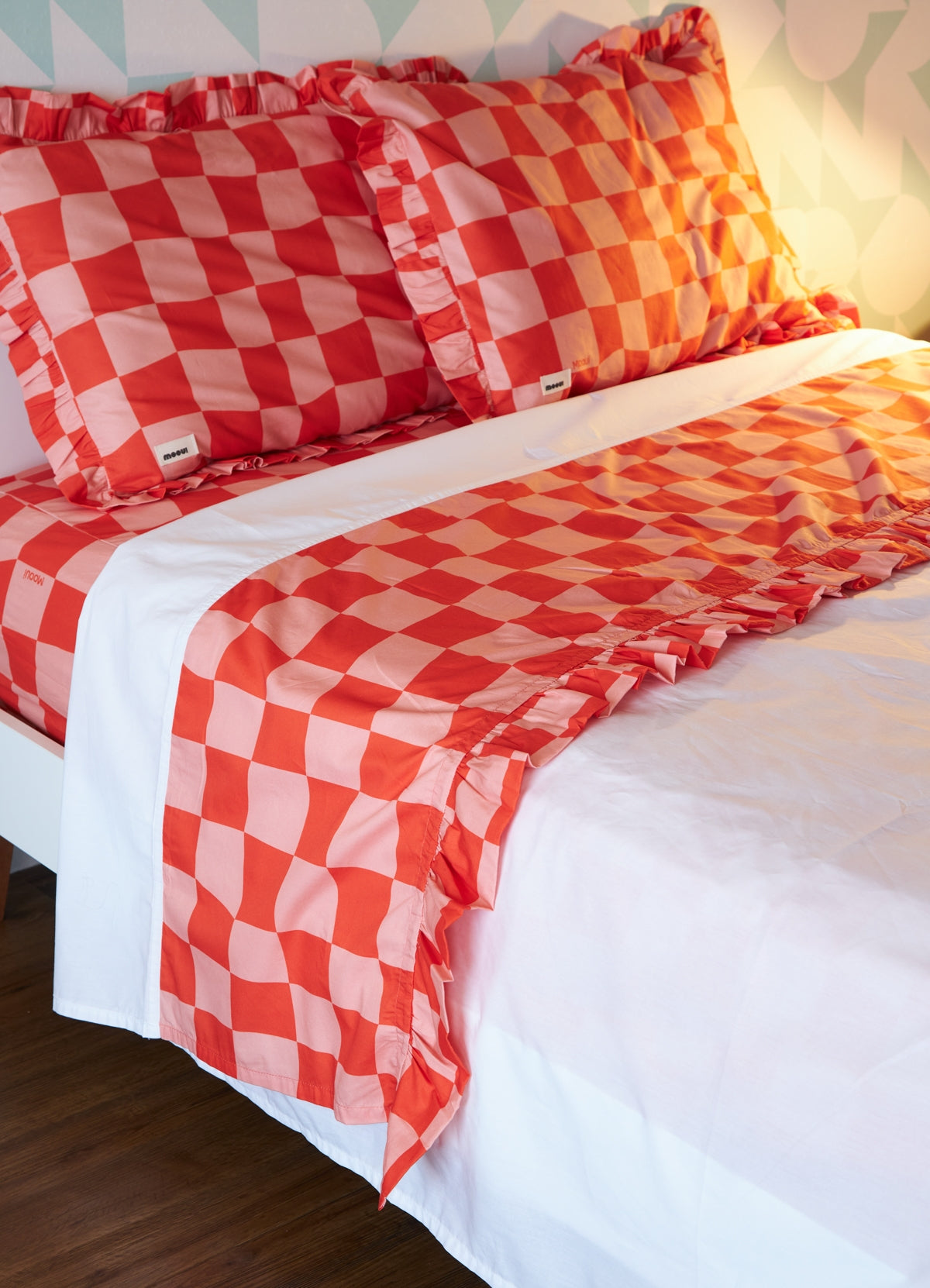 O Lençol de Cima Adulto com Babado Xadrez Vermelho é uma peça capaz de envolver qualquer pessoa - no sentido literal e figurado - com amor e estampa mágica, o lençol de cobrir casal traz aconchego puro com o toque macio do algodão. Nosso lençol de cobrir adulto é branco, com a estampa na vira.