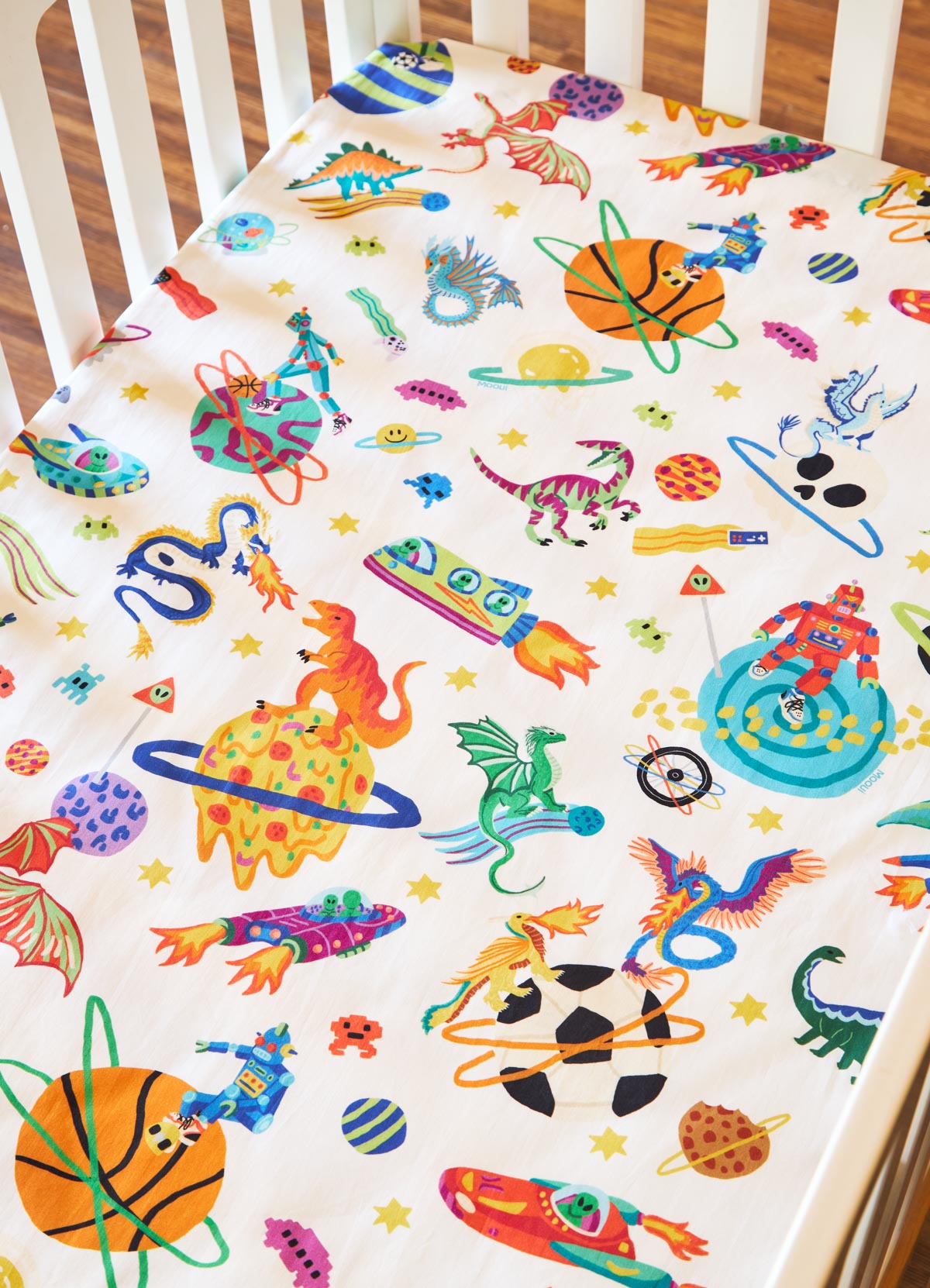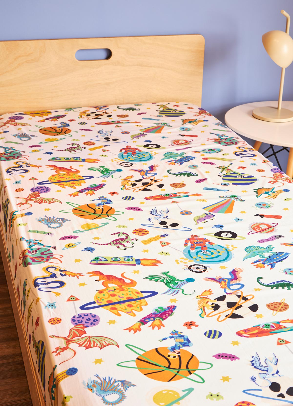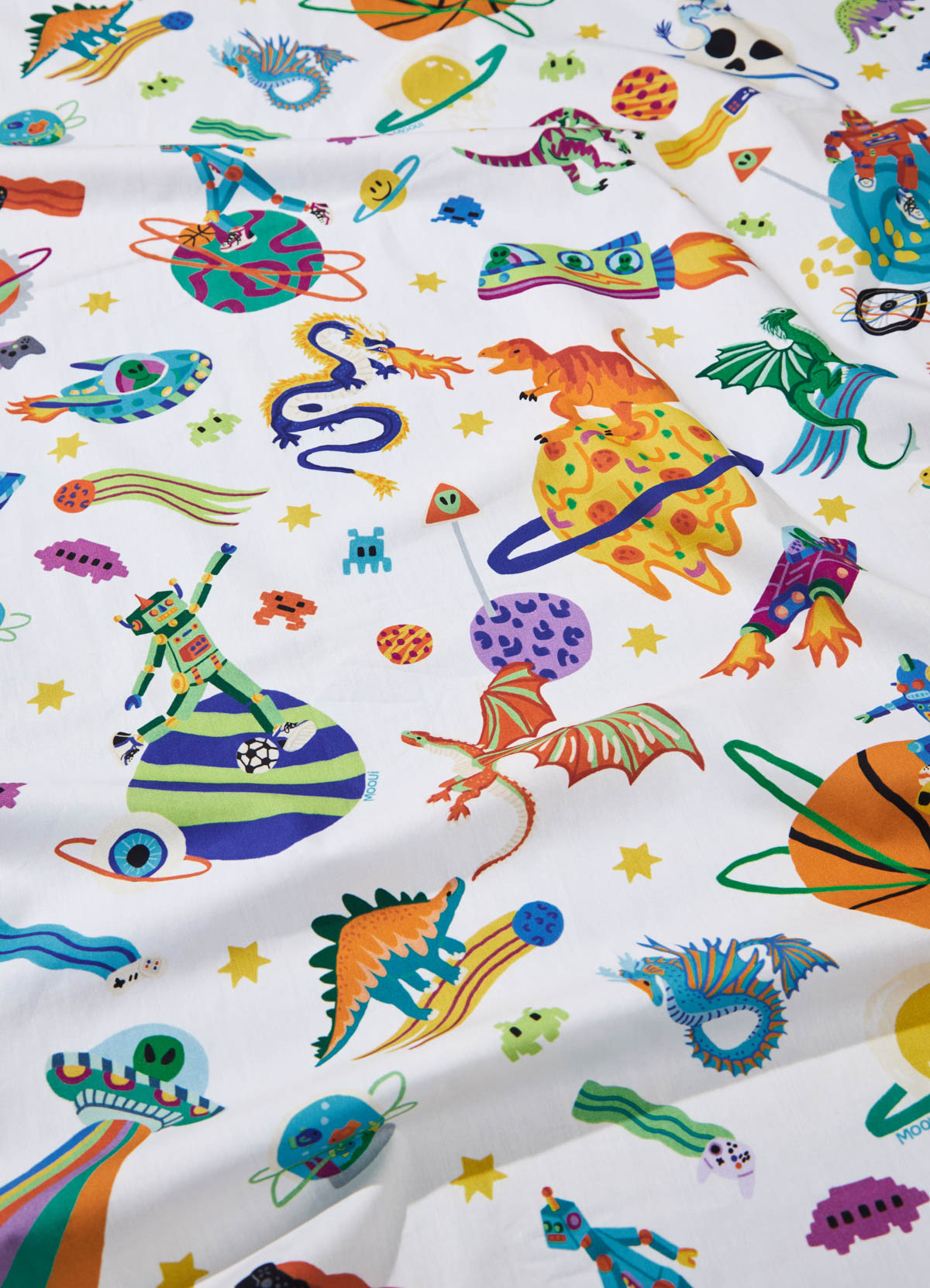 O Lençol de Cima Infantil Aventura Cósmica Off da MOOUI envolve o sono das crianças com conforto e magia. Confeccionado em algodão acetinado 230 fios, proporciona toque macio e respirável para noites tranquilas e sonhos coloridos.