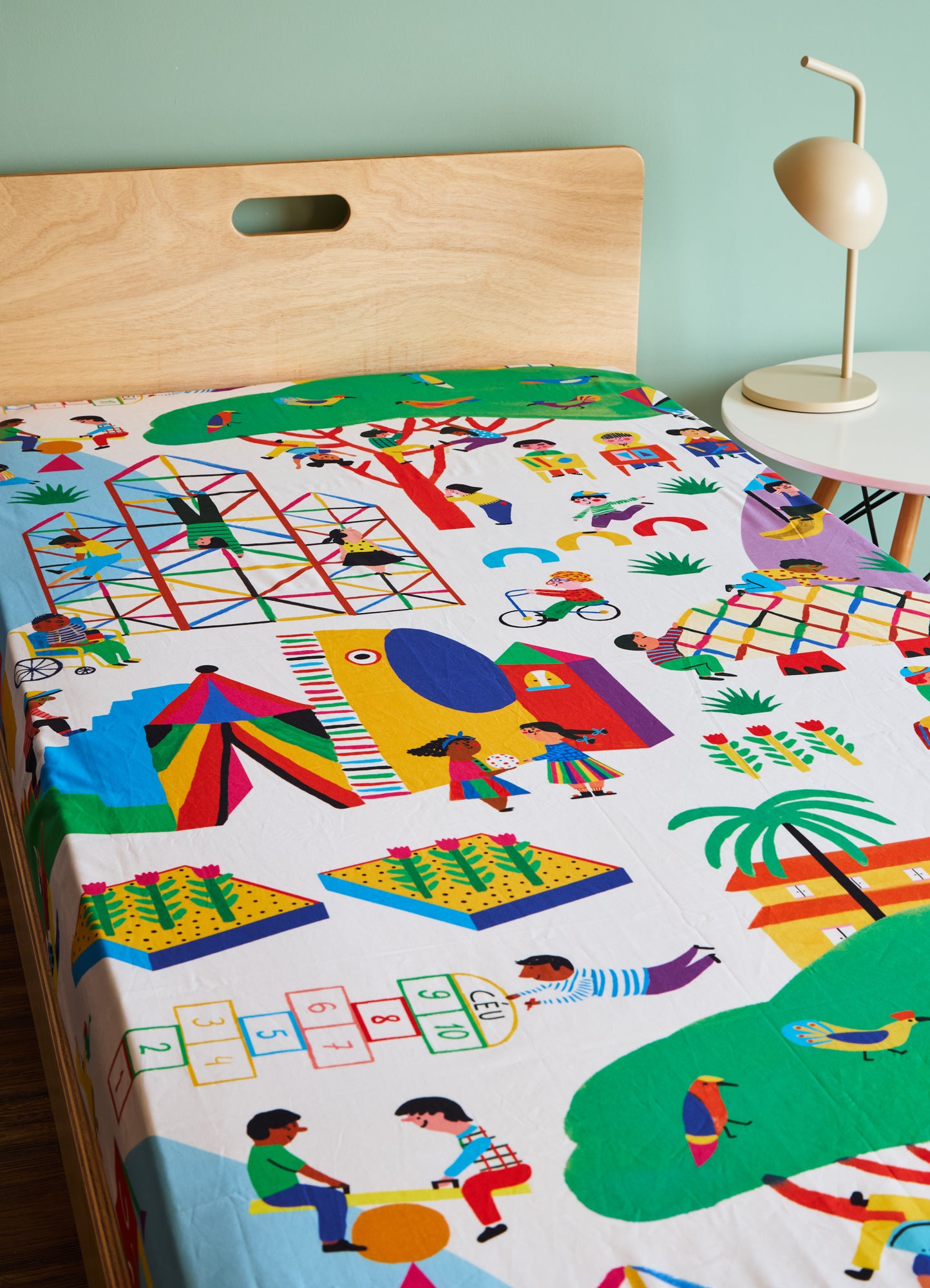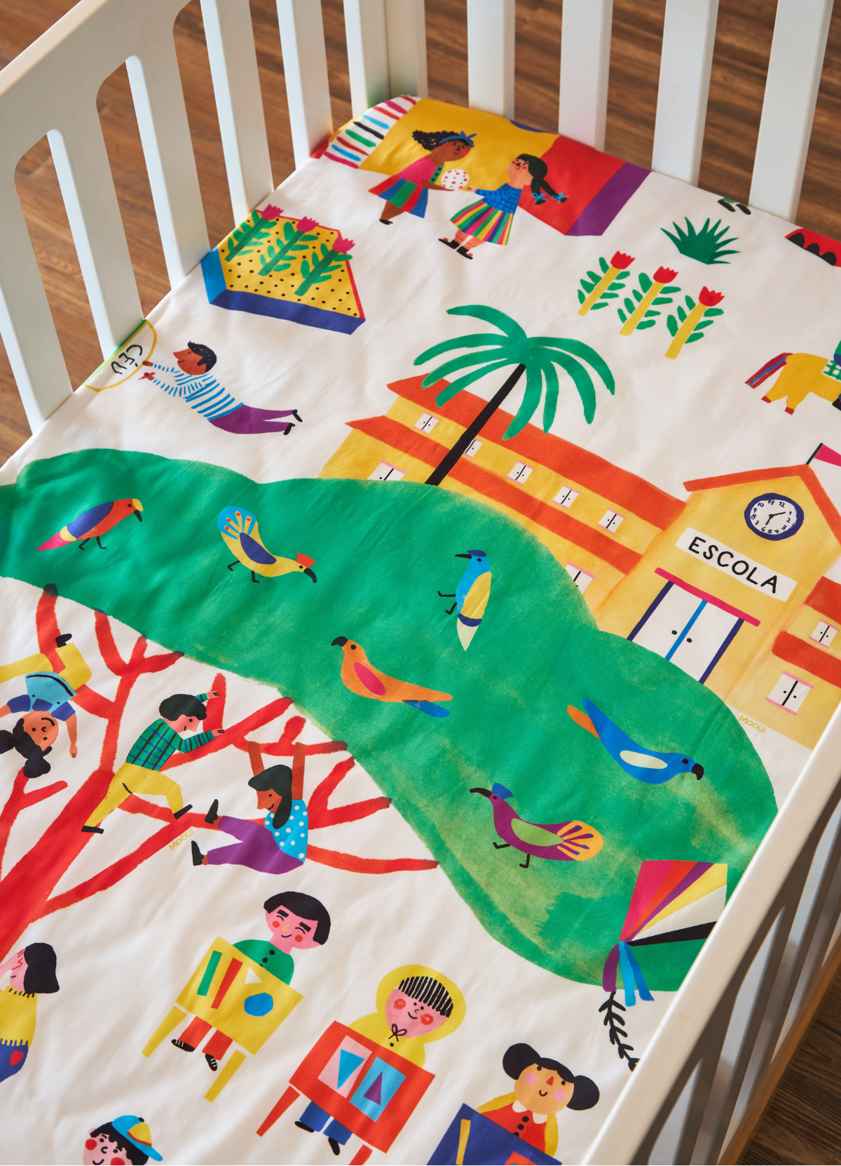 O Lençol de Cima Infantil Ir à Escola da MOOUI envolve o sono das crianças com conforto e magia. Confeccionado em algodão acetinado 230 fios, proporciona toque macio e respirável para noites tranquilas e sonhos coloridos.