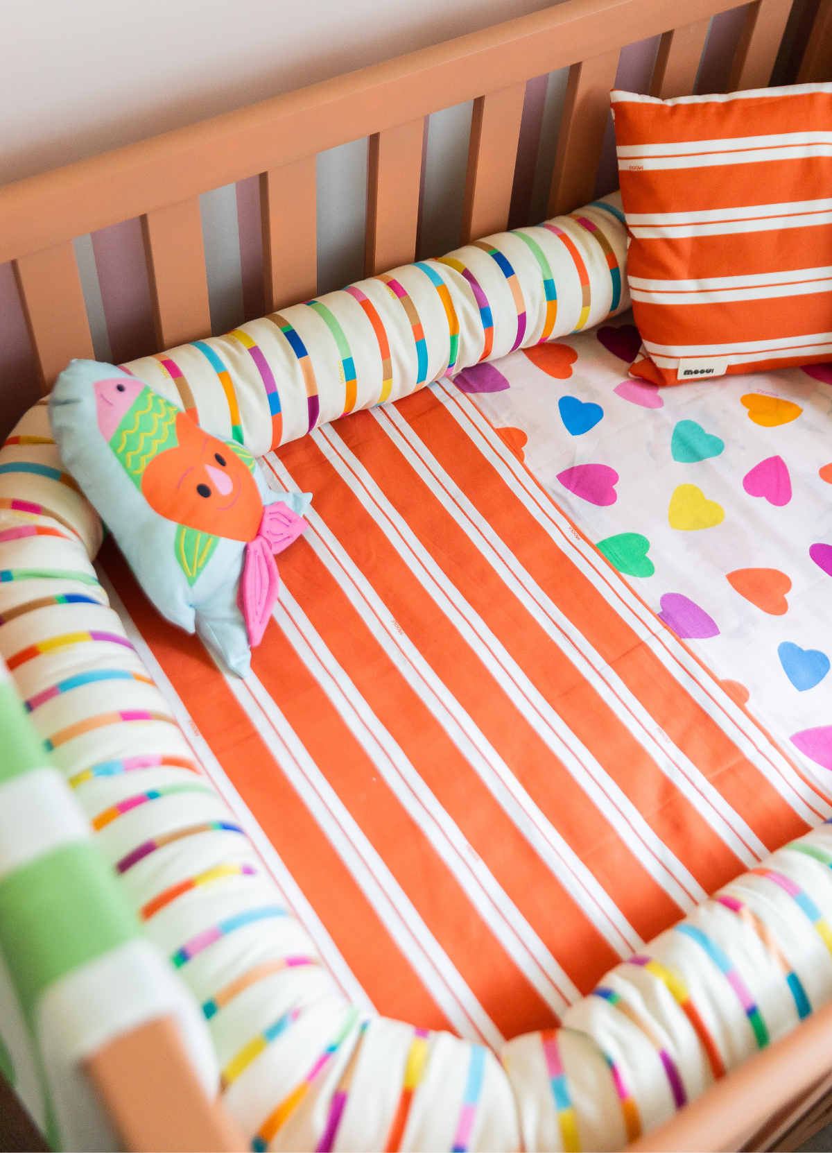 O Lençol de Cima Infantil Listrado Carmin ajuda a deixar o sono da criança mais encantado, cobrindo-a de amor e conforto. O Lençol de Cima Infantil não tem elástico, é confeccionado com algodão acetinado 230 fios e traz consigo um toque de magia que embala sonhos super divertidos nas crianças.