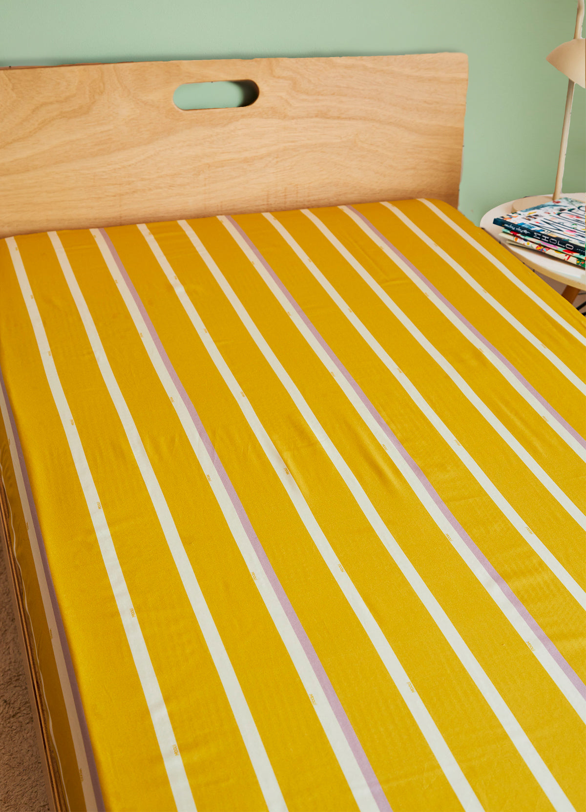 O Lençol de Cima Infantil Listrado Solar da MOOUI envolve o sono das crianças com conforto e magia. Confeccionado em algodão acetinado 230 fios, proporciona toque macio e respirável para noites tranquilas e sonhos coloridos.