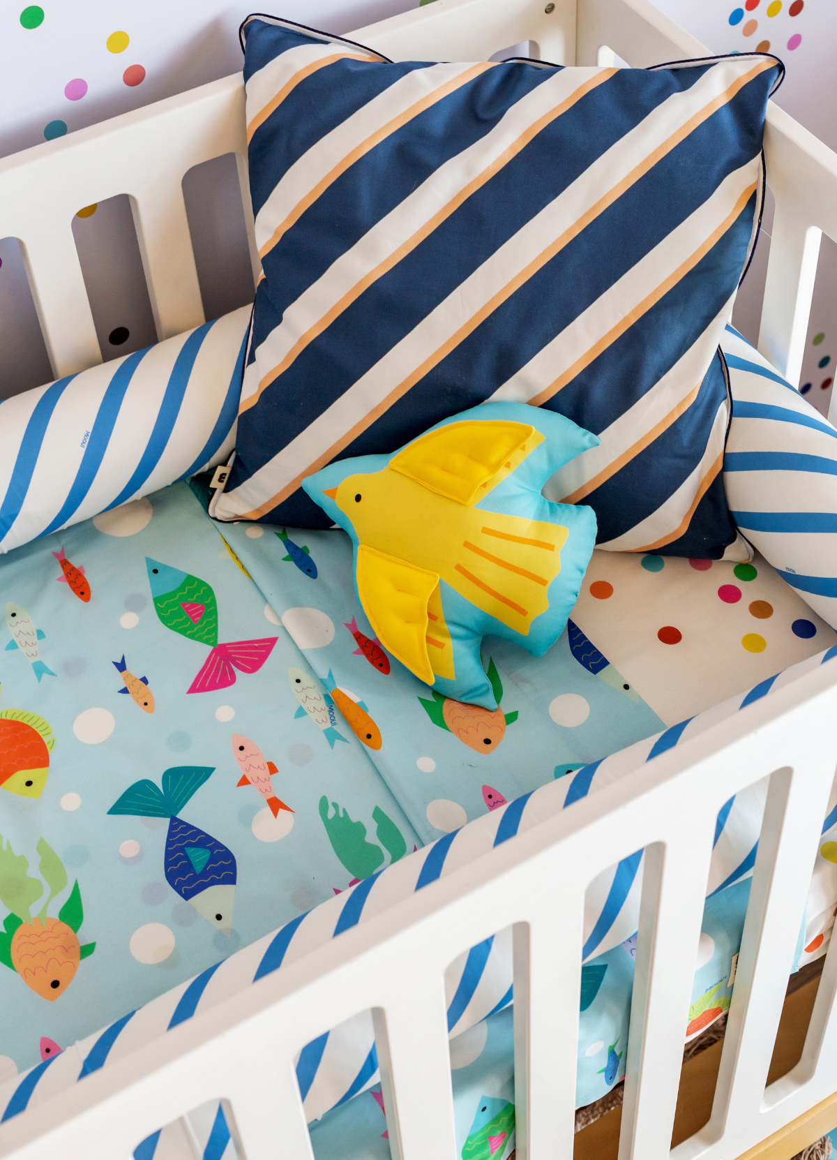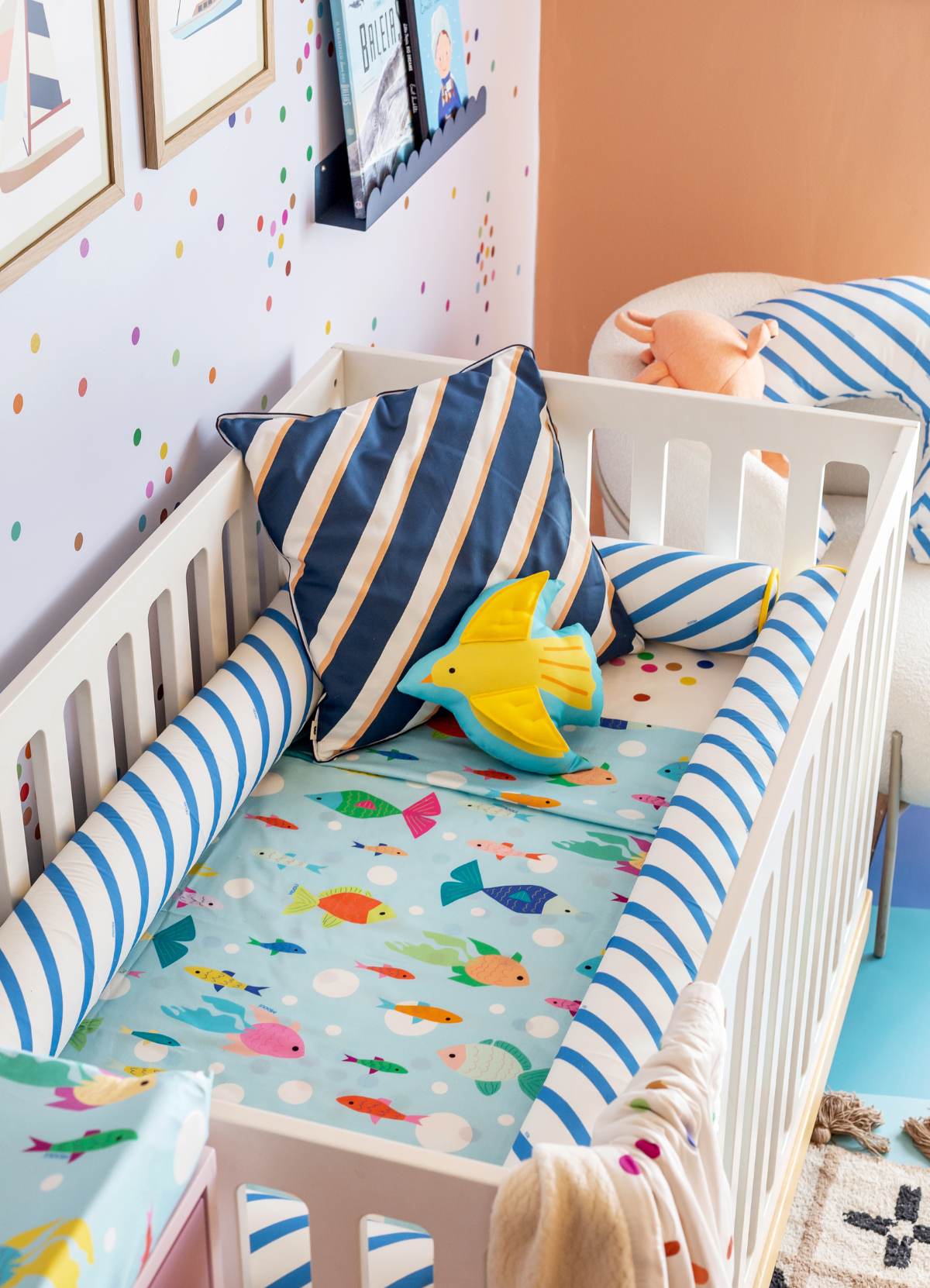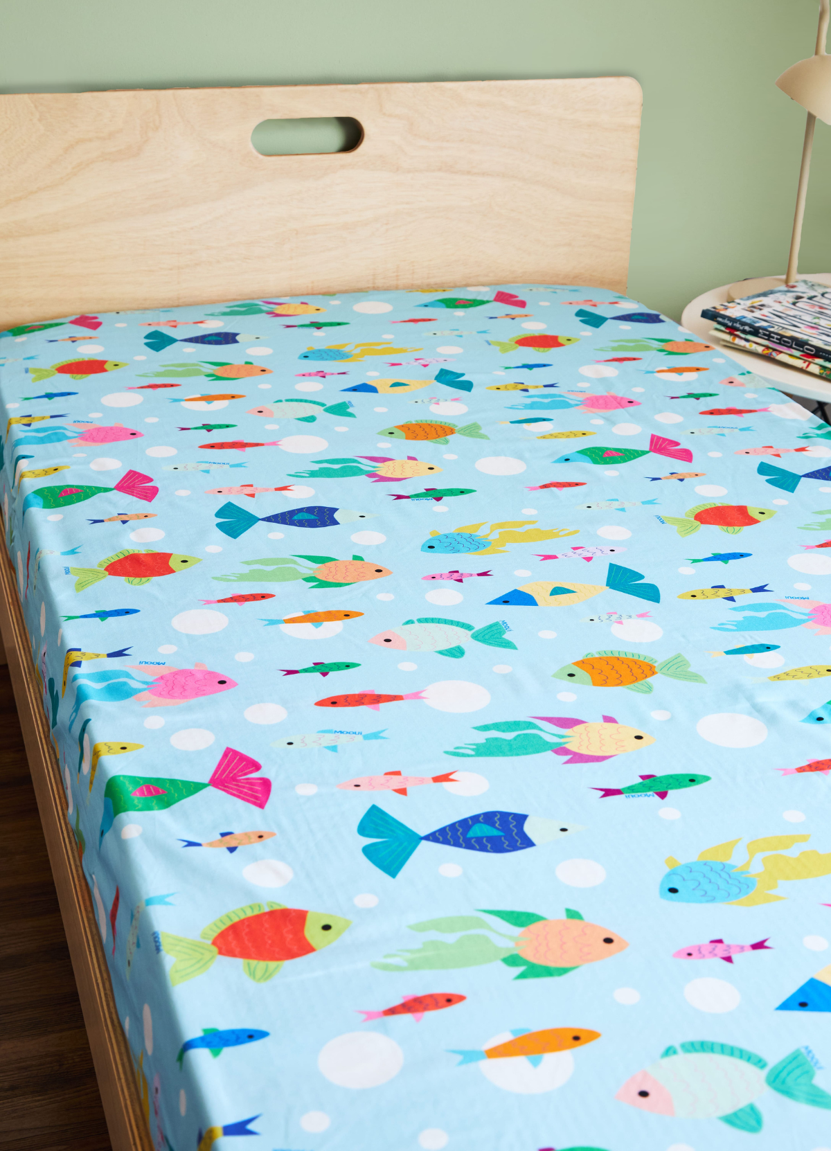 O Lençol de Cima Infantil Peixinhos Do Oceano da MOOUI envolve o sono das crianças com conforto e magia. Confeccionado em algodão acetinado 230 fios, proporciona toque macio e respirável para noites tranquilas e sonhos coloridos.