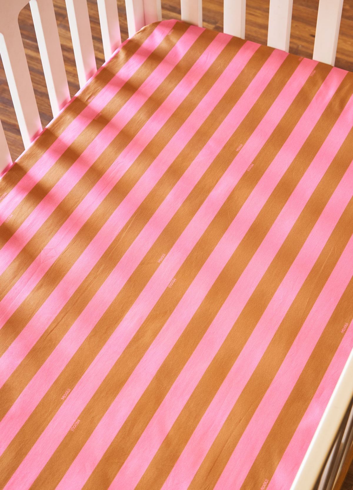 O Lençol de Cima Infantil Listrado Flor de Cacau da MOOUI envolve o sono das crianças com conforto e magia. Confeccionado em algodão acetinado 230 fios, proporciona toque macio e respirável para noites tranquilas e sonhos coloridos.