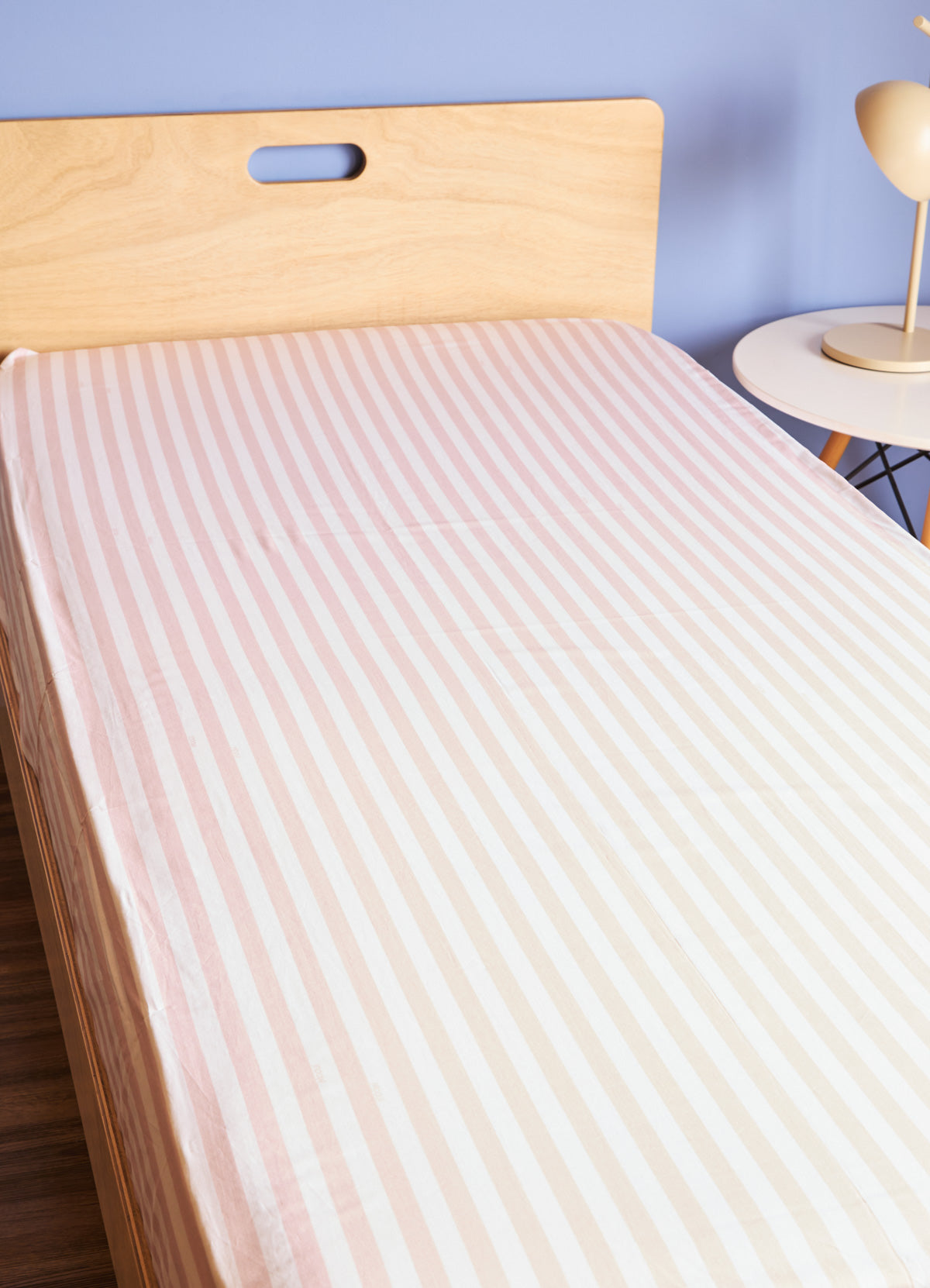 O Lençol de Cima Infantil Listrado Pétalas da MOOUI envolve o sono das crianças com conforto e magia. Confeccionado em algodão acetinado 230 fios, proporciona toque macio e respirável para noites tranquilas e sonhos coloridos.