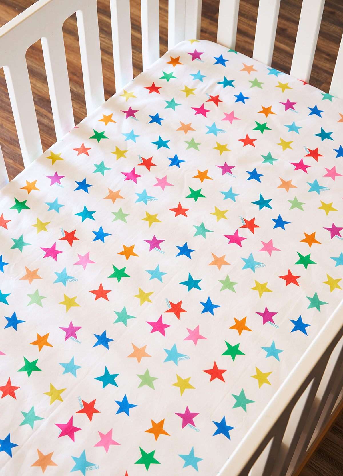 O Lençol de Elástico Infantil Estrelitas da MOOUI combina praticidade e conforto para o sono das crianças. Com elástico em toda a volta, permanece perfeitamente ajustado ao colchão mesmo durante o sono mais agitado dos pequenos.