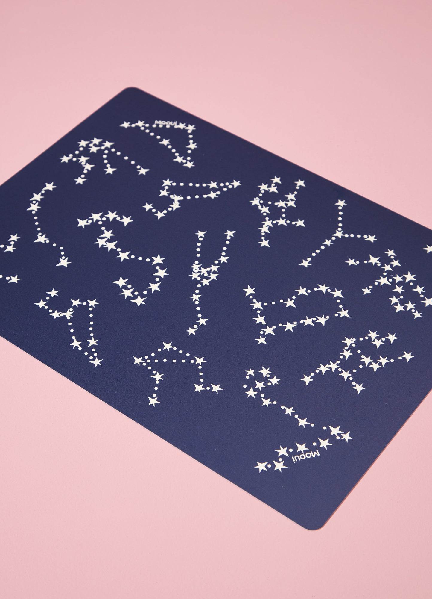 O lugar Americano Constelações Mooui é uma peça que ajudará a criar novas memórias e fazer desses momentos de refeição algo ainda mais mágico e único. Saia do básico das mesas e estampe sua rotina com os lugares americanos Mooui. Você pode usar todos iguais ou misturar estampas, deixando a sua decoração ainda mais atual e extrovertida.