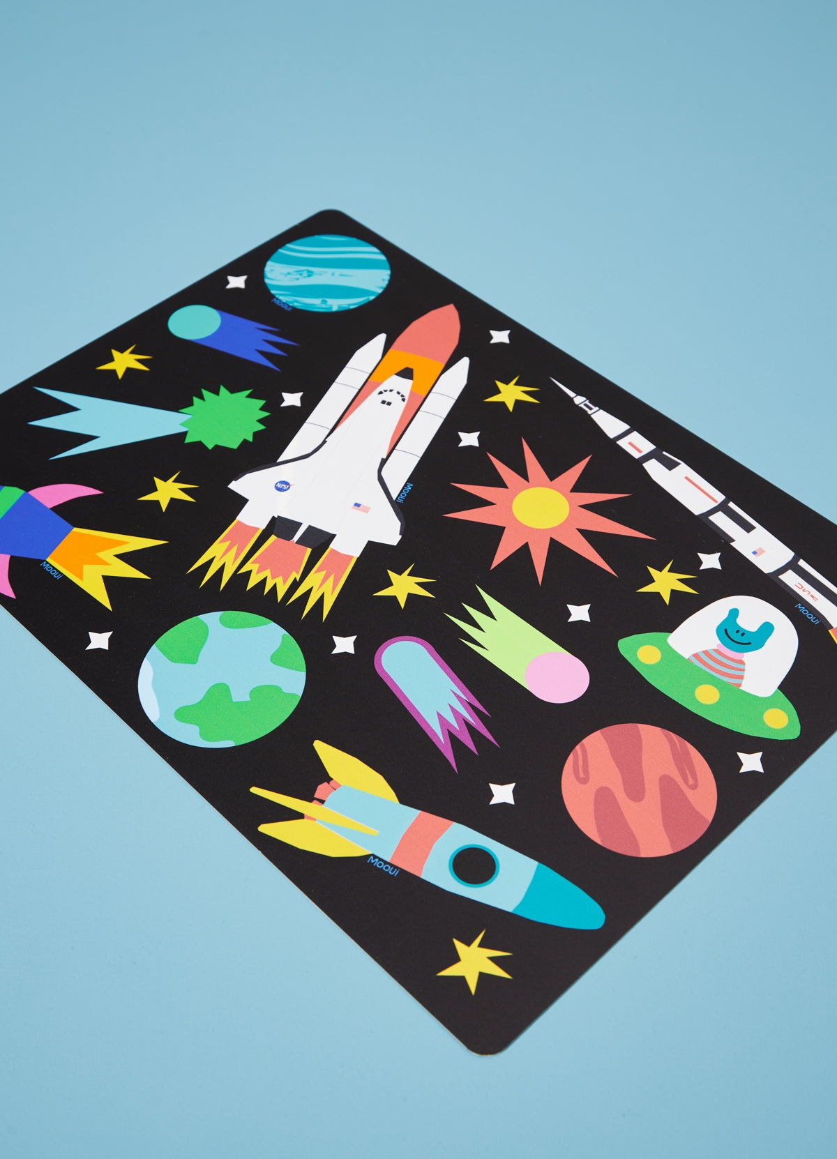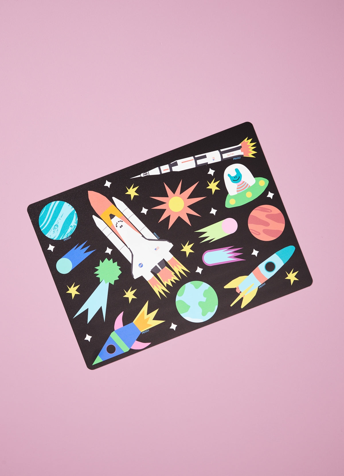O lugar Americano Corrida Espacial Mooui é uma peça que ajudará a criar novas memórias e fazer desses momentos de refeição algo ainda mais mágico e único. Saia do básico das mesas e estampe sua rotina com os lugares americanos Mooui. Você pode usar todos iguais ou misturar estampas, deixando a sua decoração ainda mais atual e extrovertida.