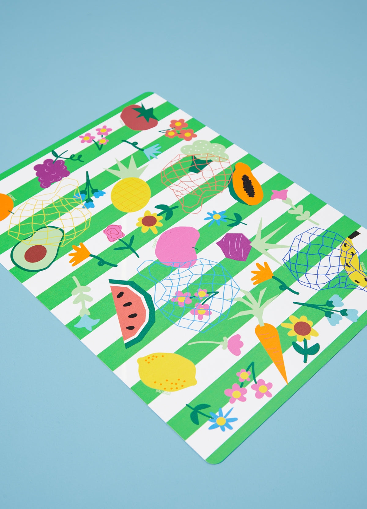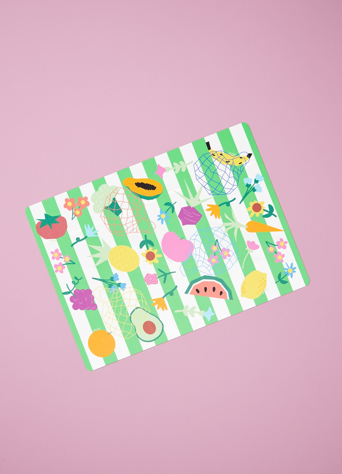 O lugar Americano Frutas e Legumes Mooui é uma peça que ajudará a criar novas memórias e fazer desses momentos de refeição algo ainda mais mágico e único. Saia do básico das mesas e estampe sua rotina com os lugares americanos Mooui. Você pode usar todos iguais ou misturar estampas, deixando a sua decoração ainda mais atual e extrovertida.