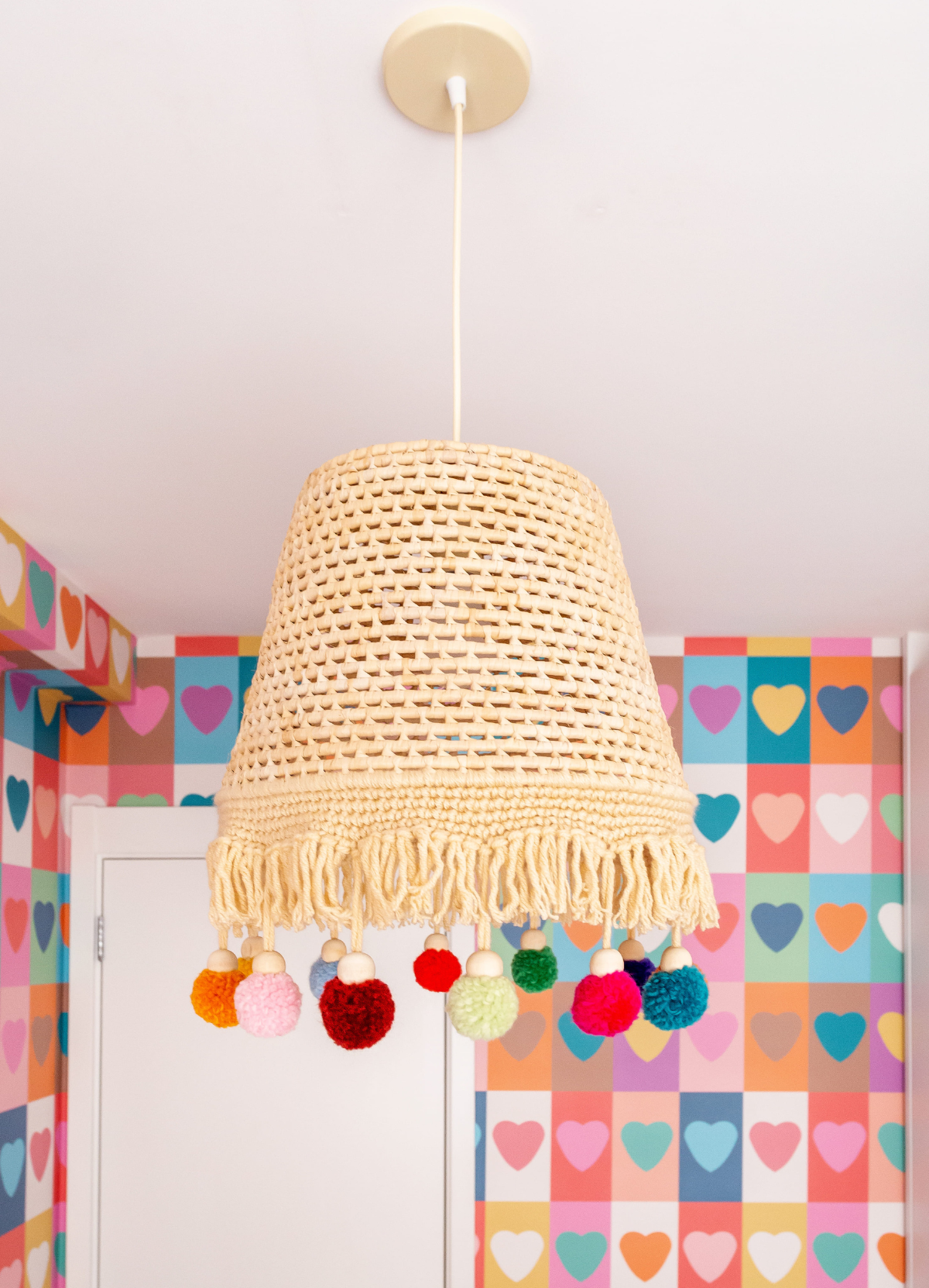 Com design moderno essa Luminária Pendente vai tranformar a decoração do quarto infantil. Feita em palha e com detalhes de bolinhas em lã colorida, essa luminária é charmosa e cheia de estilo! Outro benefício dessa luminária é sua funcionalidade, que proporciona uma iluminação bem distribuída por todo o espaço, garantindo comodidade e praticidade.
