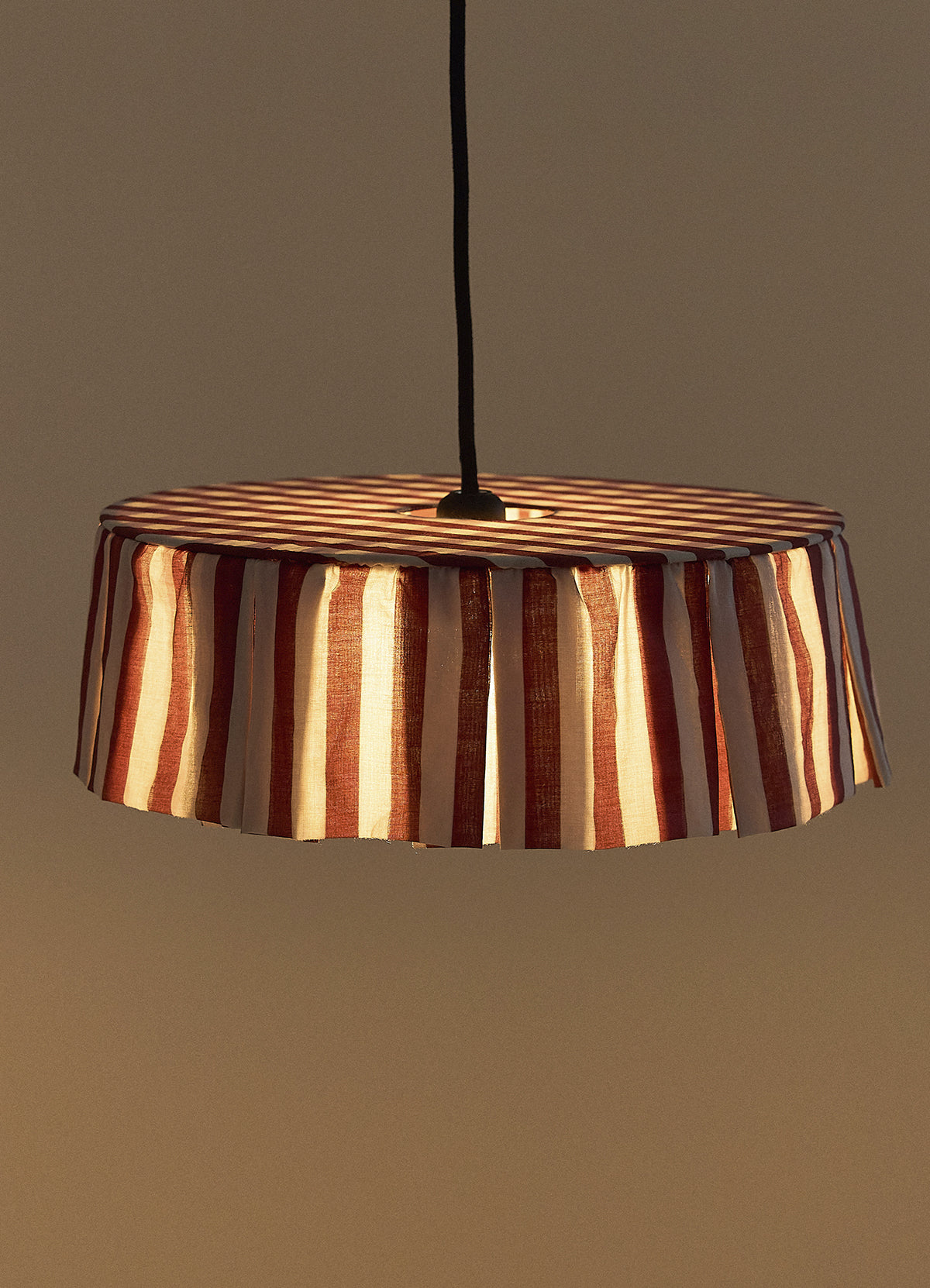 A Luminária Pendente Nobodinoz Vibes Listras Castanha é o toque final perfeito para deixar a casa ainda mais encantadora. Feito em tecido de algodão com delicados babados, ele cria uma iluminação suave e acolhedora, ideal para qualquer ambiente. As listras em castanha adicionam um charme atemporal, combinando com diferentes estilos de decoração.