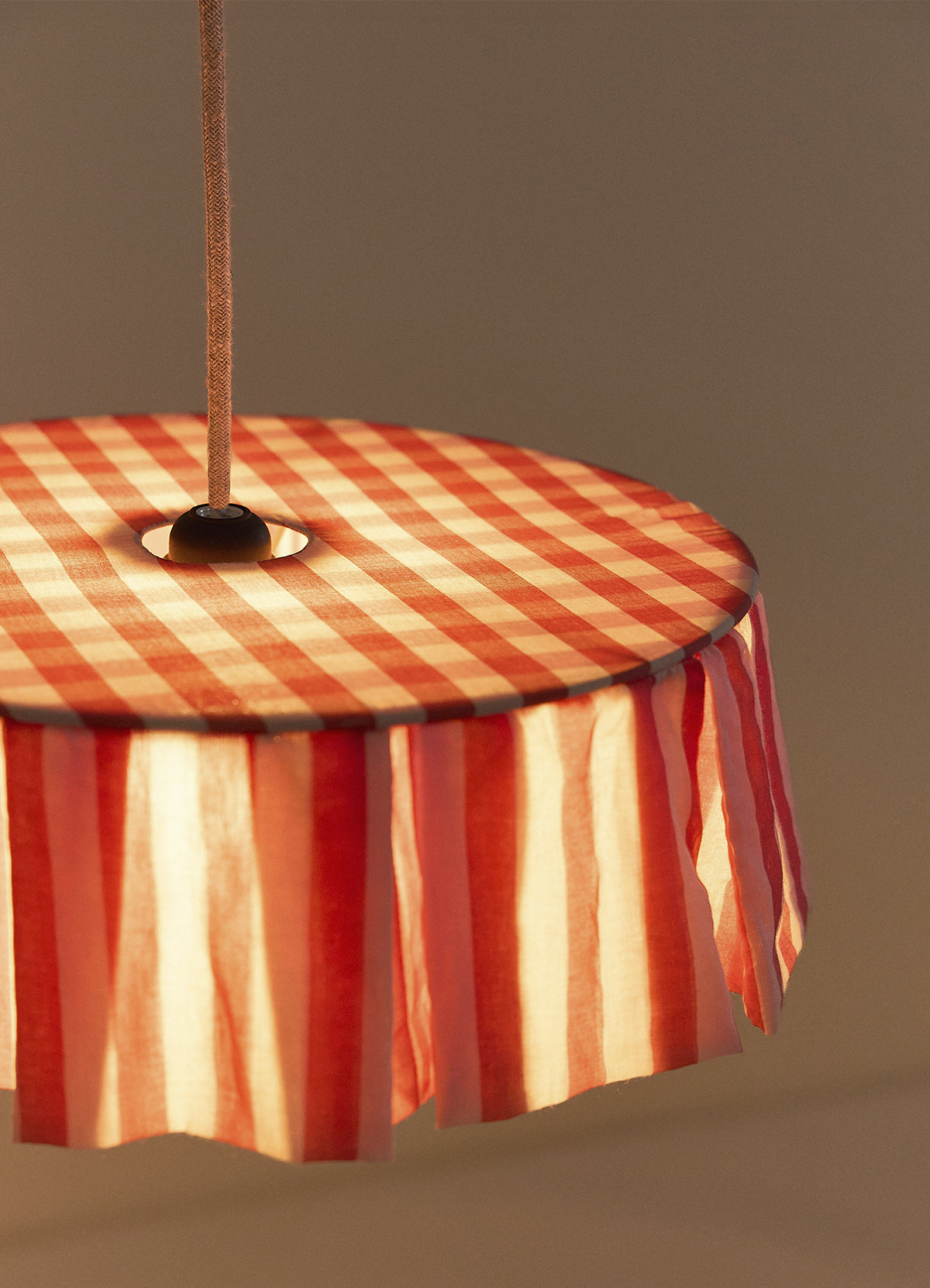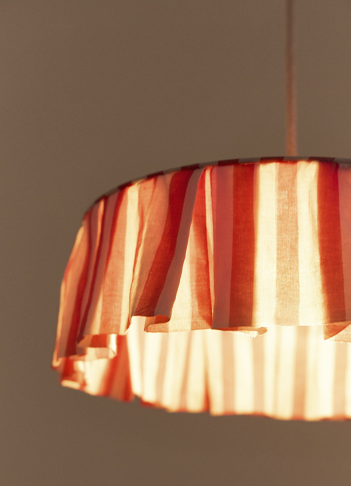 A Luminária Pendente Nobodinoz Vibes Listras Vermelho é o toque final perfeito para deixar a casa ainda mais encantadora. Feito em tecido de algodão com delicados babados, ele cria uma iluminação suave e acolhedora, ideal para qualquer ambiente. As listras em vermelho adicionam um charme atemporal, combinando com diferentes estilos de decoração.