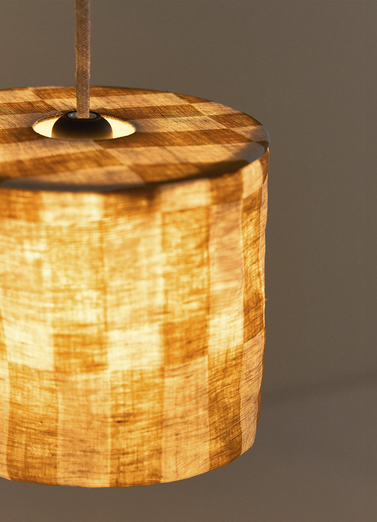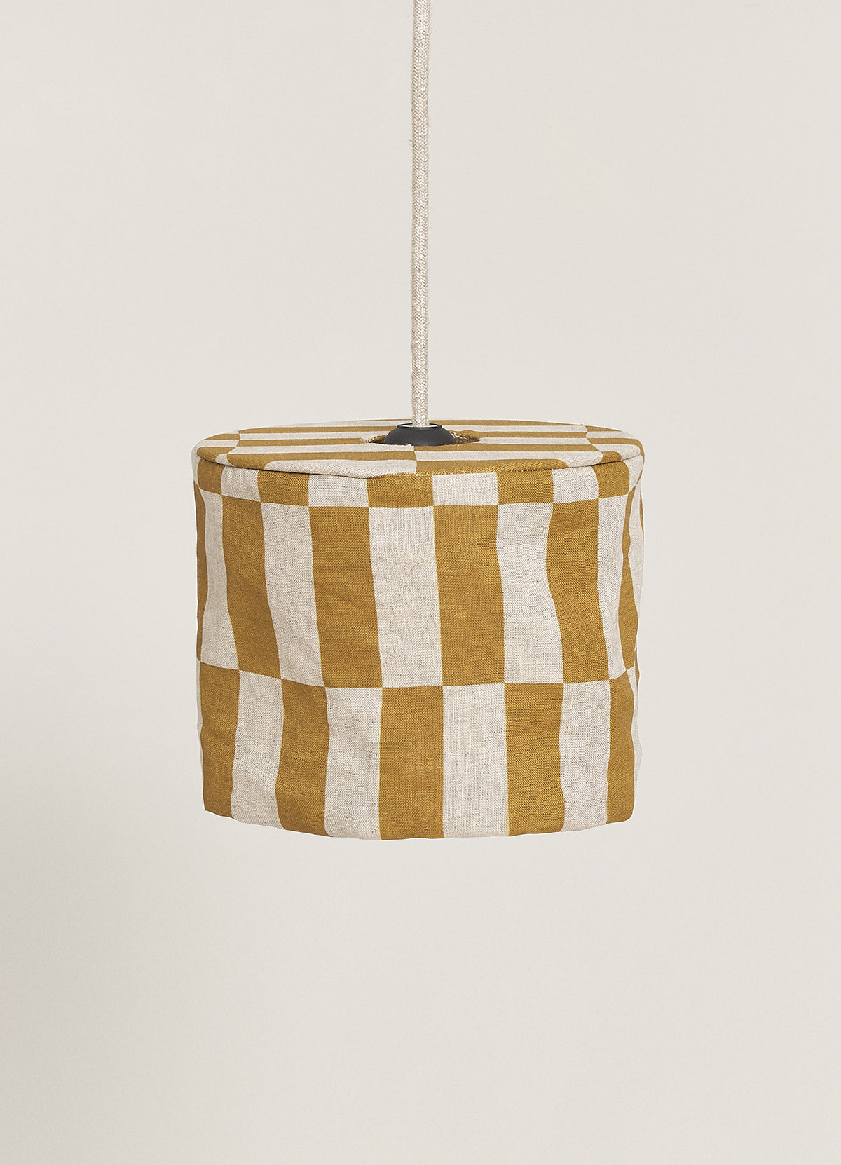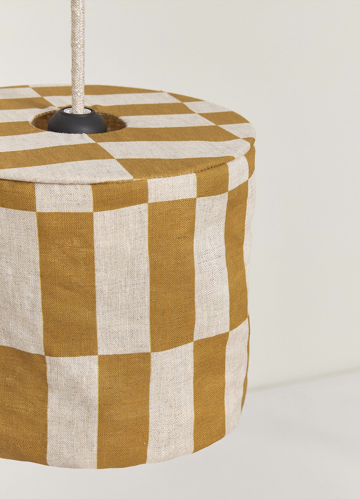 A Luminária Pendente Nobodinoz Vibes Tiles Mostarda leva elegância e aconchego a sua casa com seu design sofisticado e atemporal. Feito em tecido de linho estampado, ele traz uma combinação única de textura natural e estampa geométrica no tom mostarda, perfeita para composições neutras, modernas ou boho.