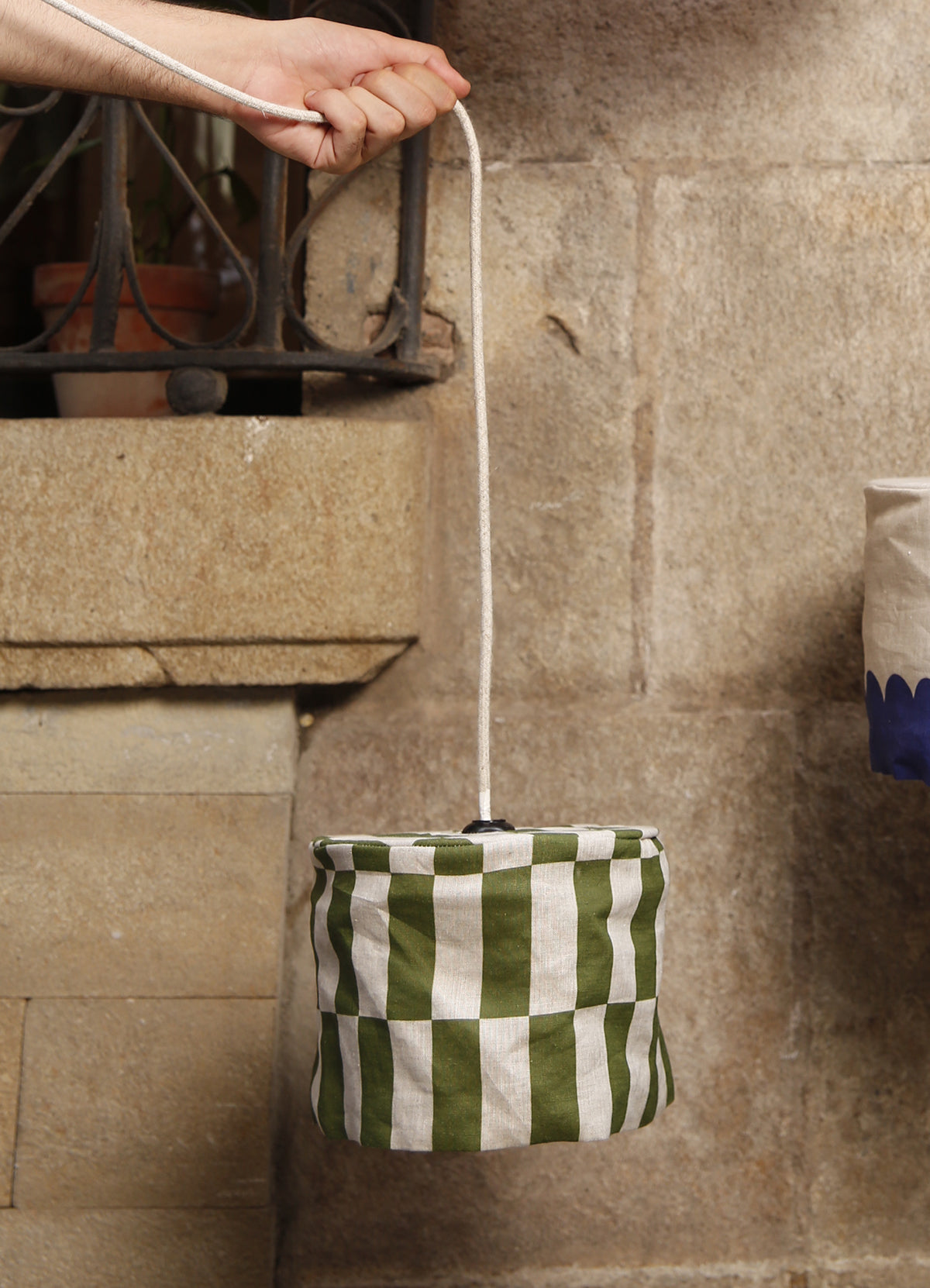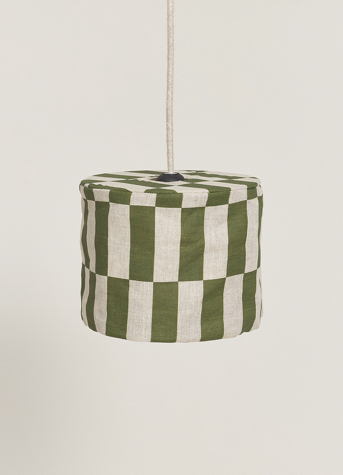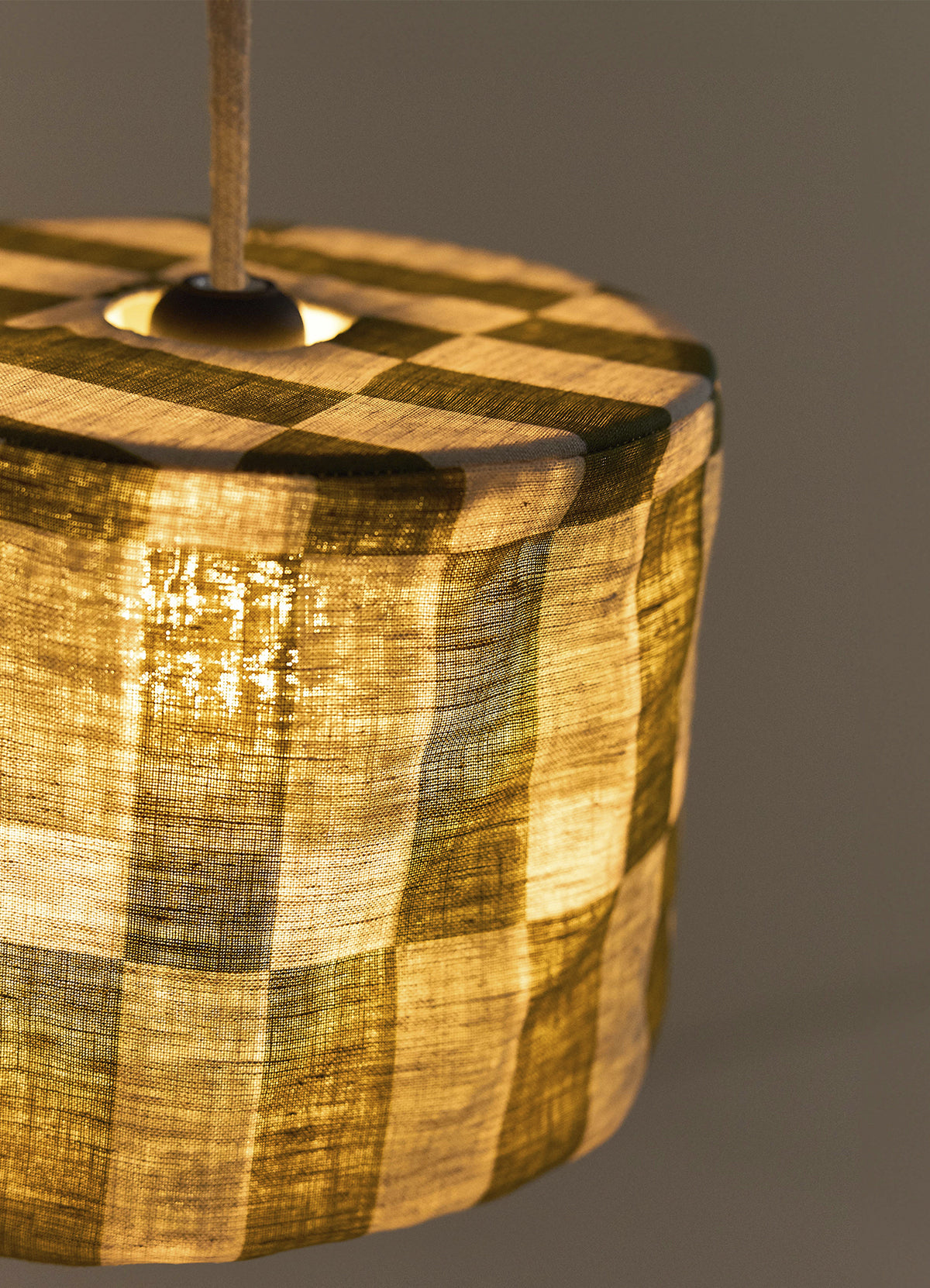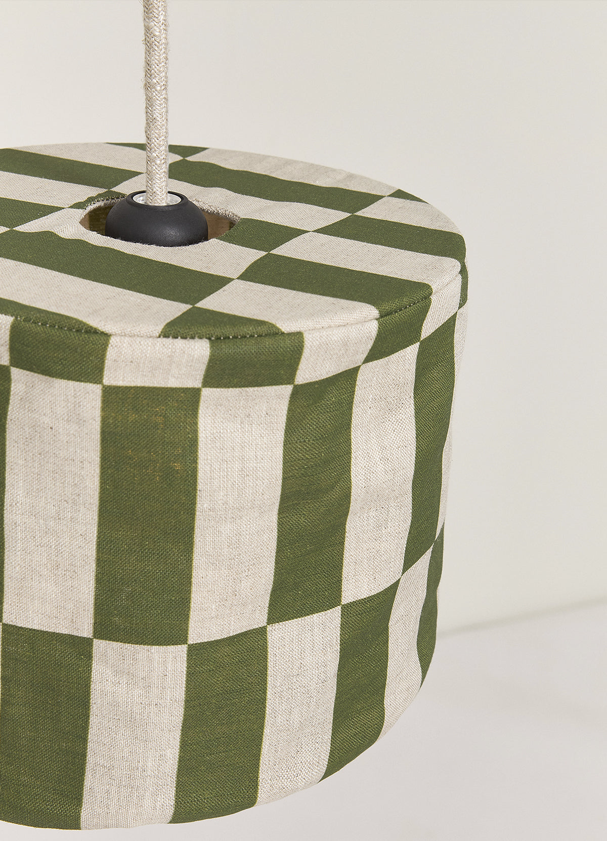 A Luminária Pendente Nobodinoz Vibes Tiles Verde leva elegância e aconchego a sua casa com seu design sofisticado e atemporal. Feito em tecido de linho estampado, ele traz uma combinação única de textura natural e estampa geométrica no tom verde, perfeita para composições neutras, modernas ou boho.
