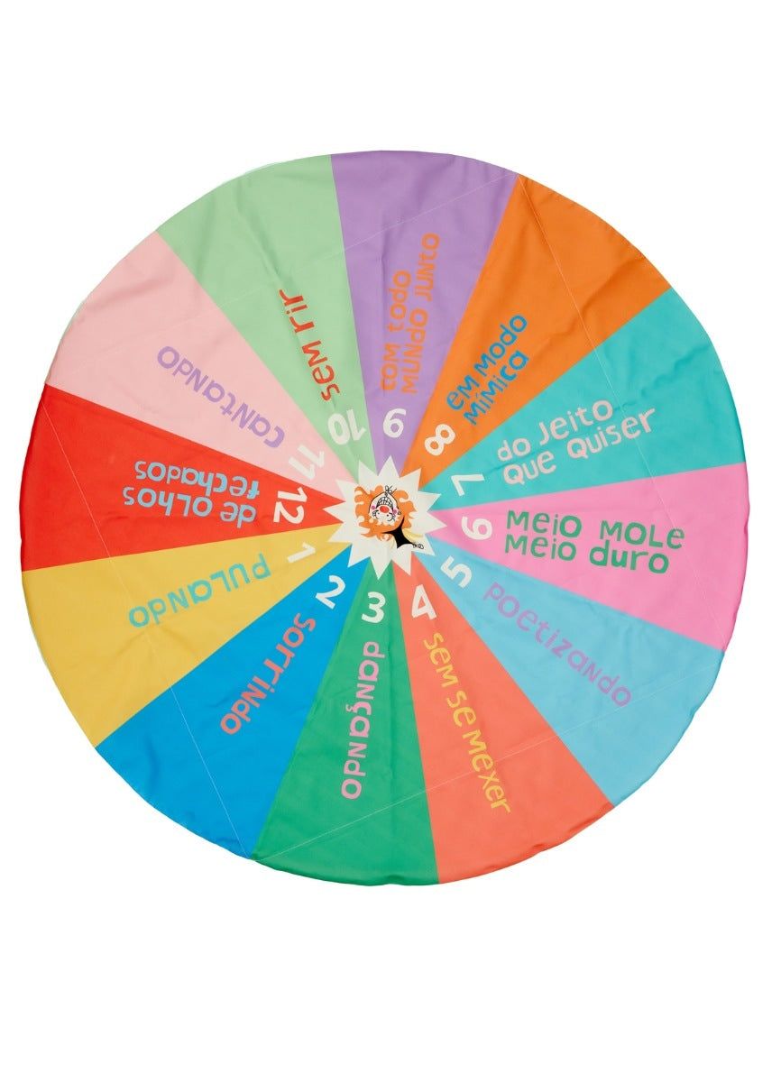 Acompanha um tabuleiro impresso com 12 números lado a lado e um guia brincante com estímulos criativos de improviso correspondentes a cada número. O brinquedo nos conduz e inspira a entrar em relação com nosso campo criativo interno dentro de um coletivo, criando conexões artísticas e afetivas.
