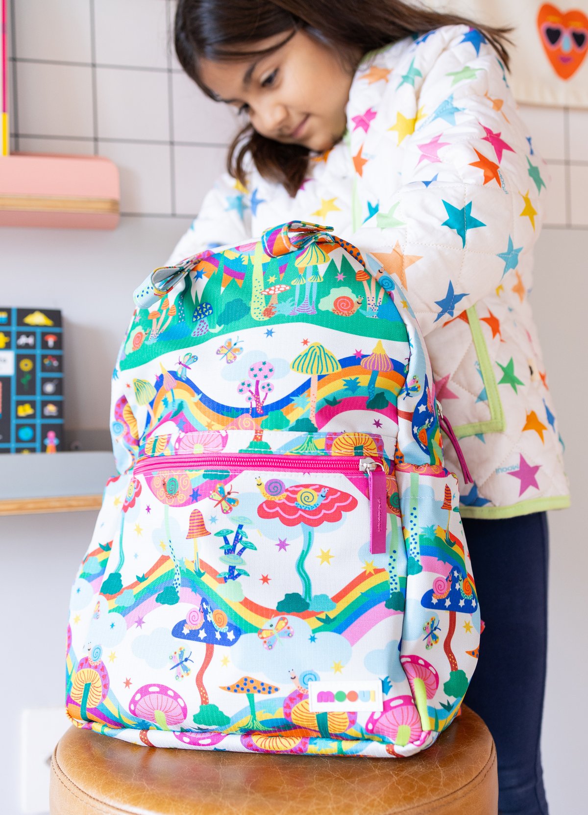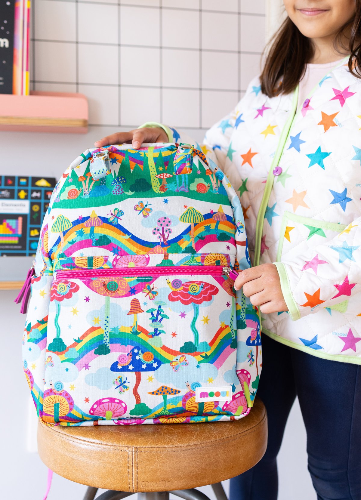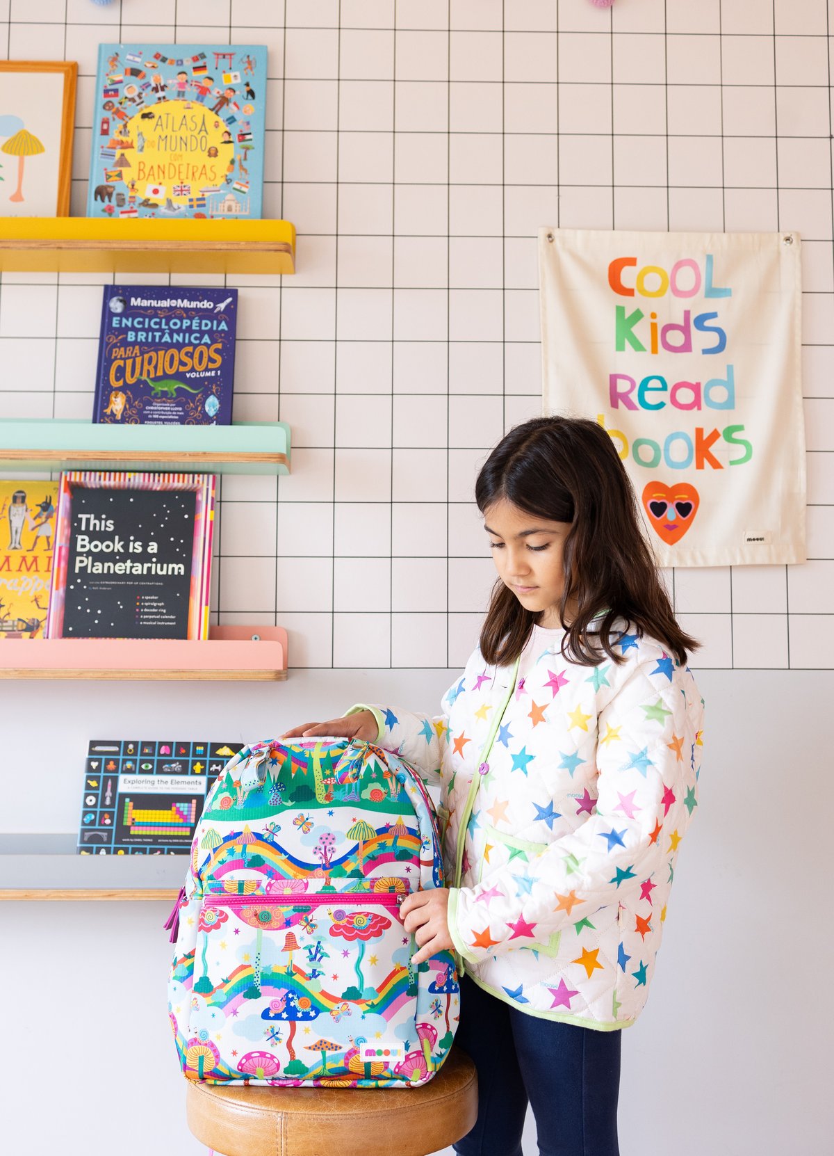 A Mochila Grande Infantil Festa de Cogumelos foi desenvolvida para servir em crianças e adultos de maneira confortável e prática, aliando espaço, versatilidade e estilo numa única peça. Com estampa exclusiva MOOUI e material resistente para poder carregar tudo o que se precisa para ir à escola, fazer um passeio, praticar uma atividade física ou realizar outras atividades com tranquilidade, com muito mais charme.