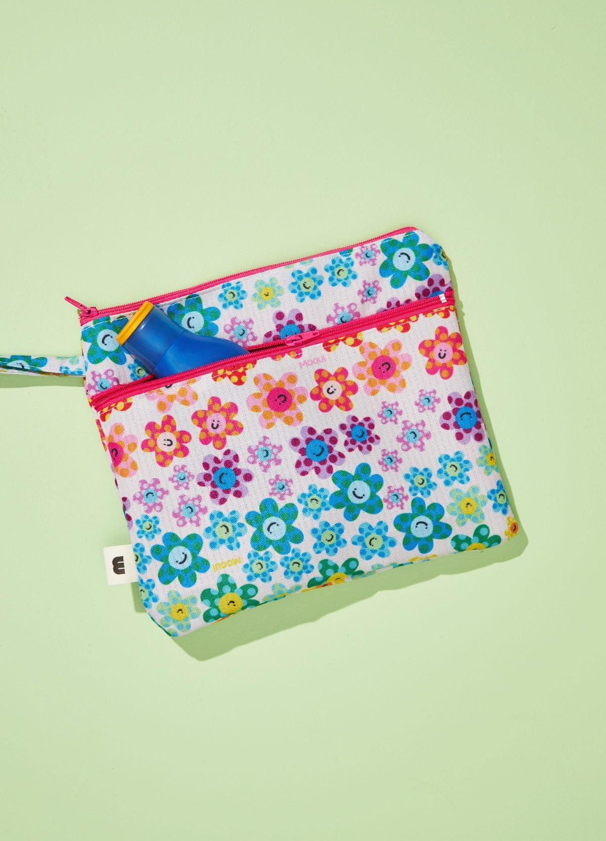 A necessaire é bem espaçosa, do mesmo tecido das toalhas impermeáveis, pela foto aparentava ter a cor bem mais forte, mas pessoalmente é mais apagada