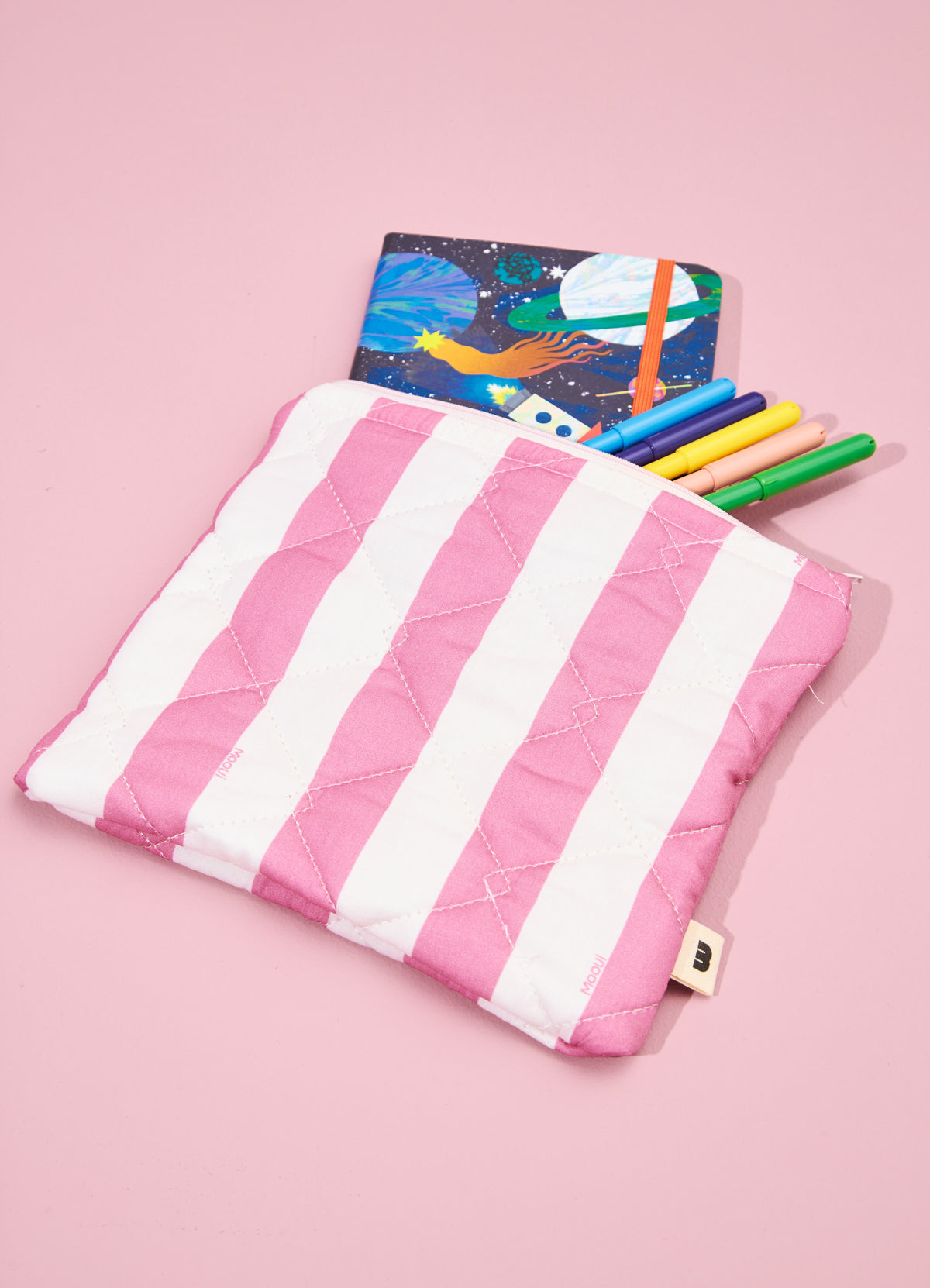 A Necessaire Matelassada Listrado Azaleia da MOOUI é essencial para a organização de pequenos itens das crianças. Com acabamento matelassado que proporciona proteção extra, é perfeita para guardar trocas de roupa, brinquedos pequenos ou materiais escolares.
