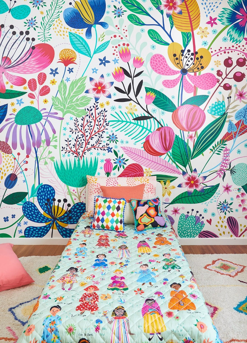 O painel de parede adesivo flora é como um portal da magia: permite que as cores, aventuras e o carinho ocupem os espaços com alegria e encanto. Além de ser um item que transforma a decoração, esse papel de parede infantil foi pensado para colorir e estampar áreas molhadas, como banheiros, lavabos, cozinhas, ou ser usados para envelopar móveis, como guarda-roupas infantis.