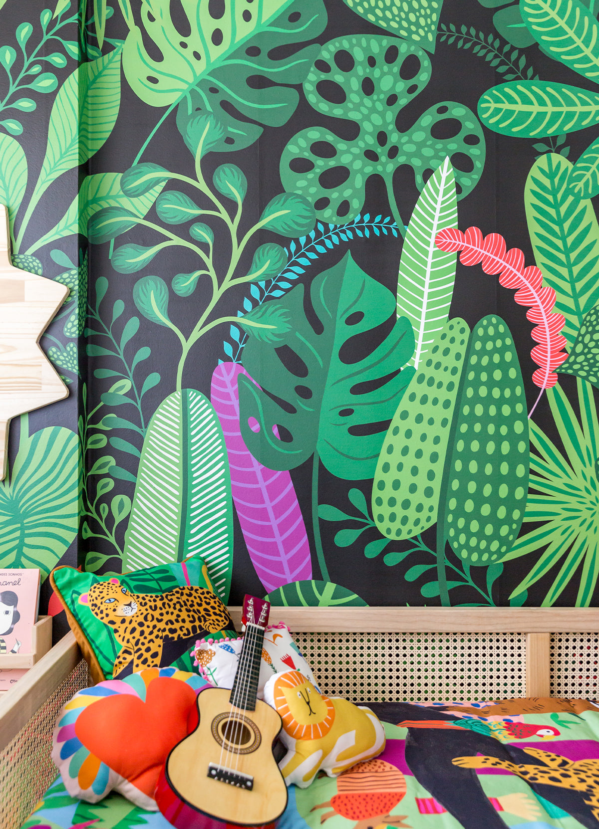 O painel de parede adesivo selva noite é como um portal da magia: permite que as cores, aventuras e o carinho ocupem os espaços com alegria e encanto. Além de ser um item que transforma a decoração, esse papel de parede infantil foi pensado para colorir e estampar áreas úmidas, como banheiros, lavabos, cozinhas, ou ser usados para envelopar móveis, como guarda-roupas infantis.