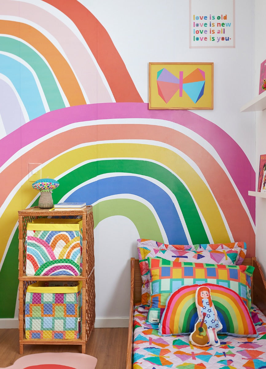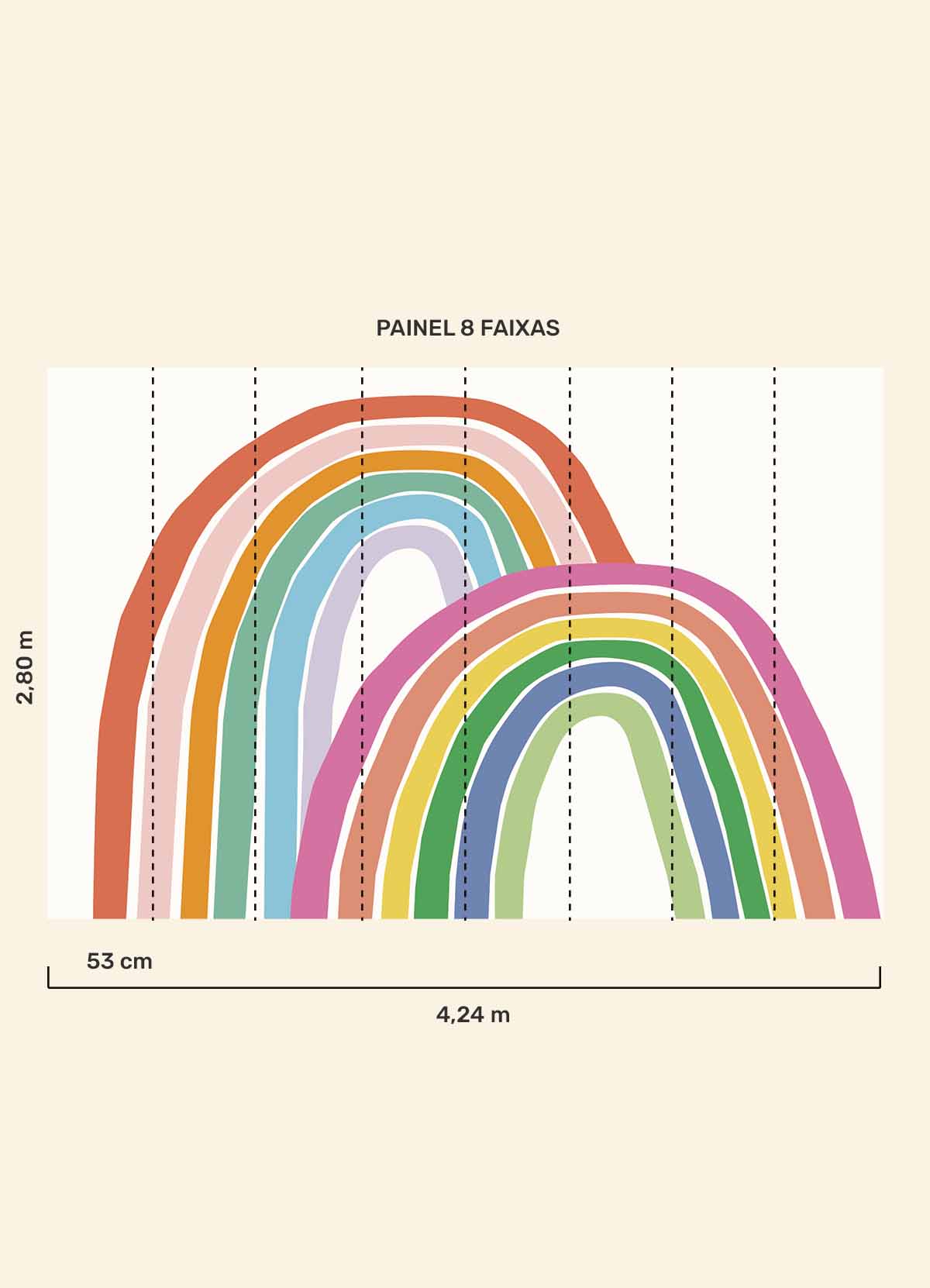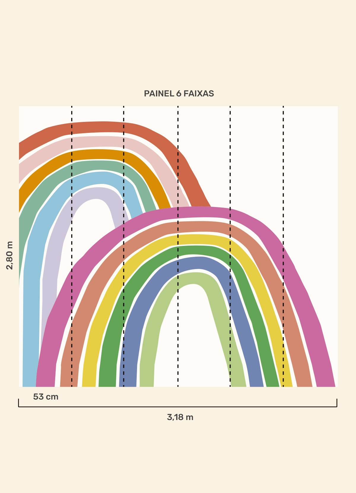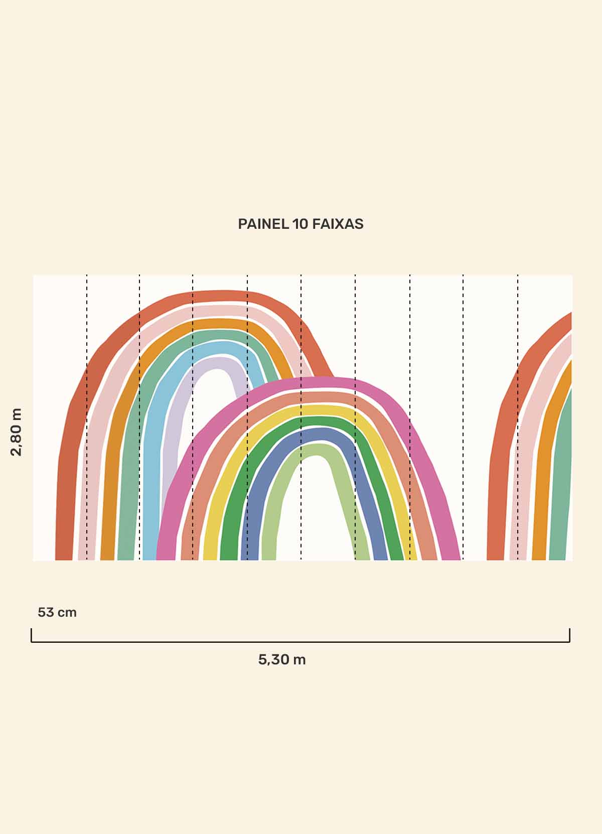O Papel de Parede Além do Arco-íris é como um portal da magia: permite que as cores, aventuras e o carinho invadam o quartinho infantil com alegria e encanto. Além de ser um item que transforma a decoração, nosso papel de parede infantil é de base vinílica e impressão de alta definição, para que você tenha um item de muita qualidade para decorar o quarto infantil. O acabamento é fosco e a textura suave, substituindo pinturas com tinta de forma mais prática e durável. E a junção das faixas não é sobreposta, mas alinhada lado a lado. Consulte a disponibilidade de estoque a pronta entrega.