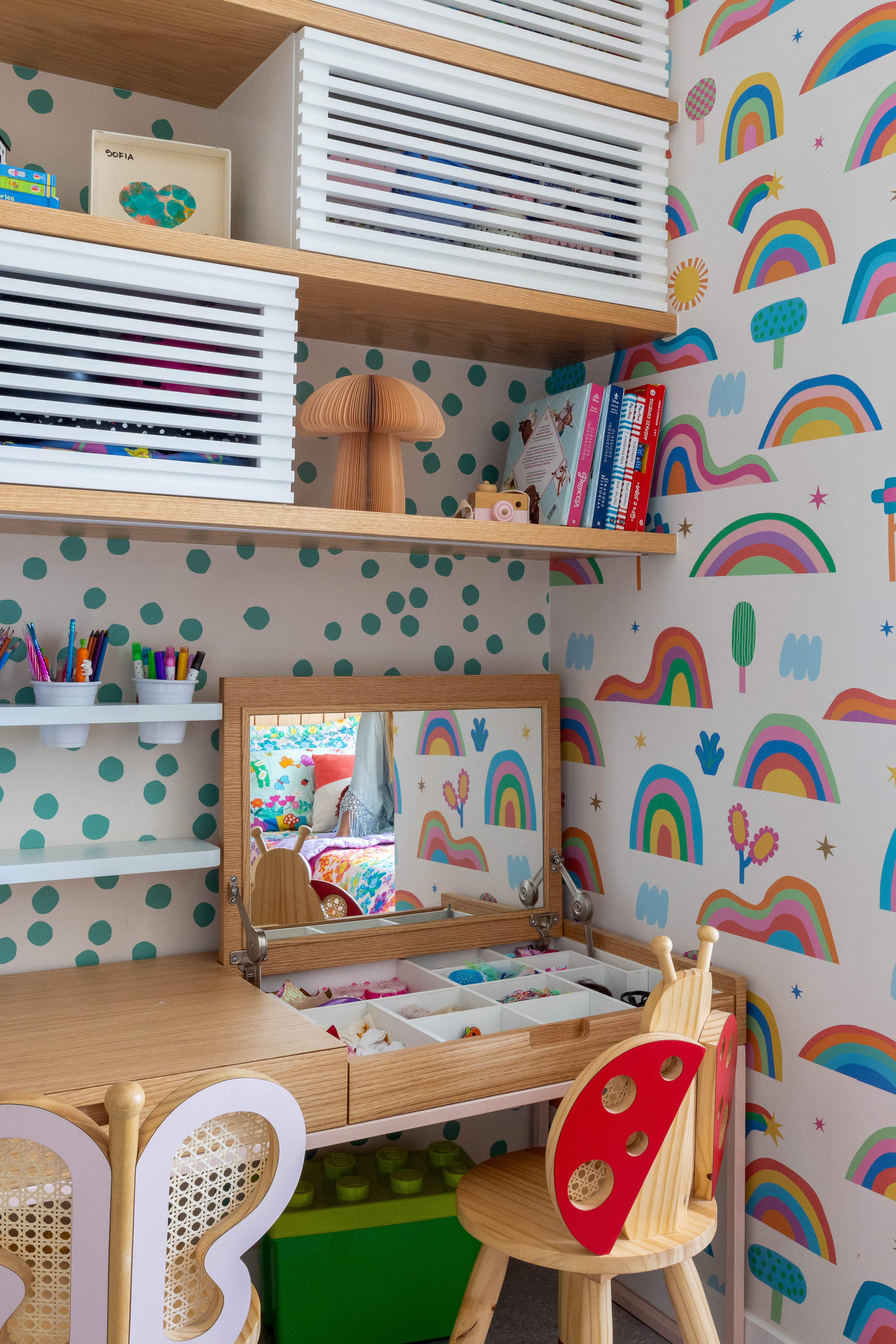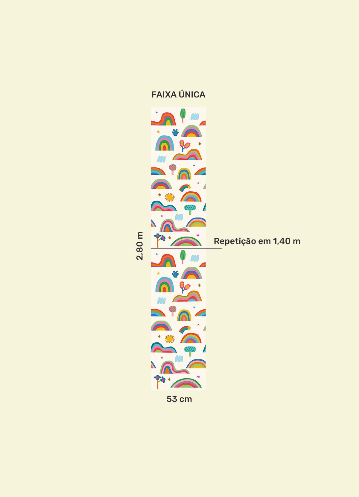 O Papel de Parede Arco-íris Fantástico Off é como um portal da magia: permite que as cores, aventuras e o carinho invadam o quartinho infantil com alegria e encanto. Além de ser um item que transforma a decoração, nosso Papel de Parede infantil é de base vinílica e impressão de alta definição, para que você tenha um item de muita qualidade para decorar o quarto infantil. O acabamento é fosco e a textura suave, substituindo pinturas com tinta de forma mais prática e durável. E a junção das faixas não é sobreposta, mas alinhada lado a lado. Consulte a disponibilidade de estoque a pronta entrega.