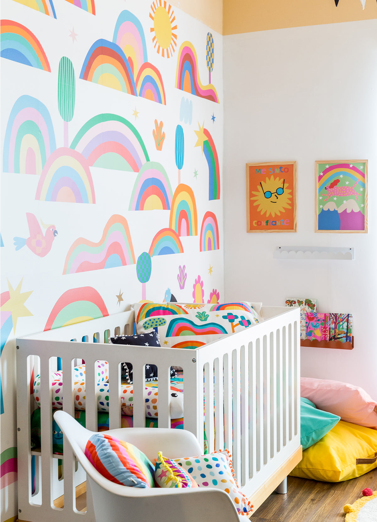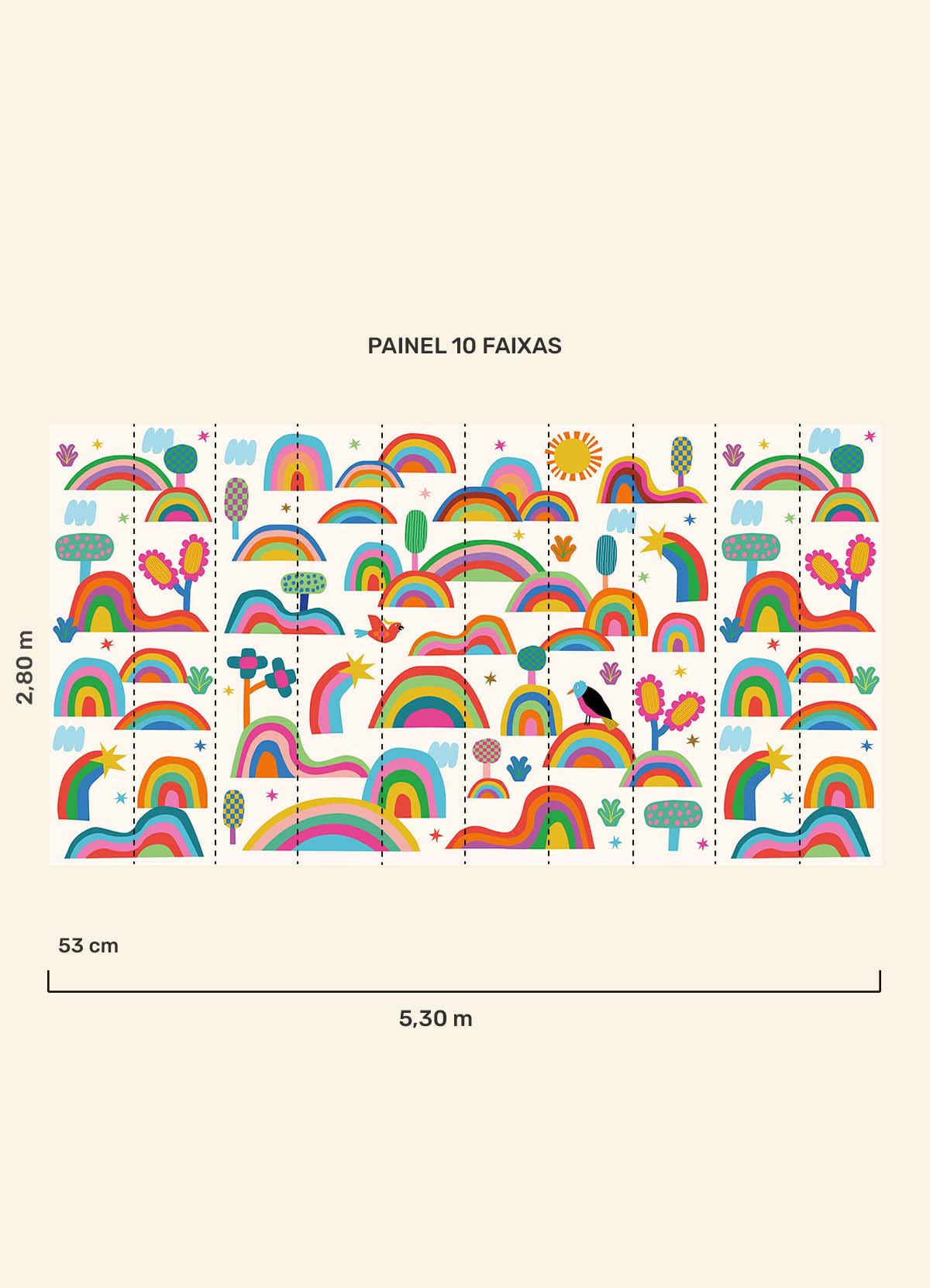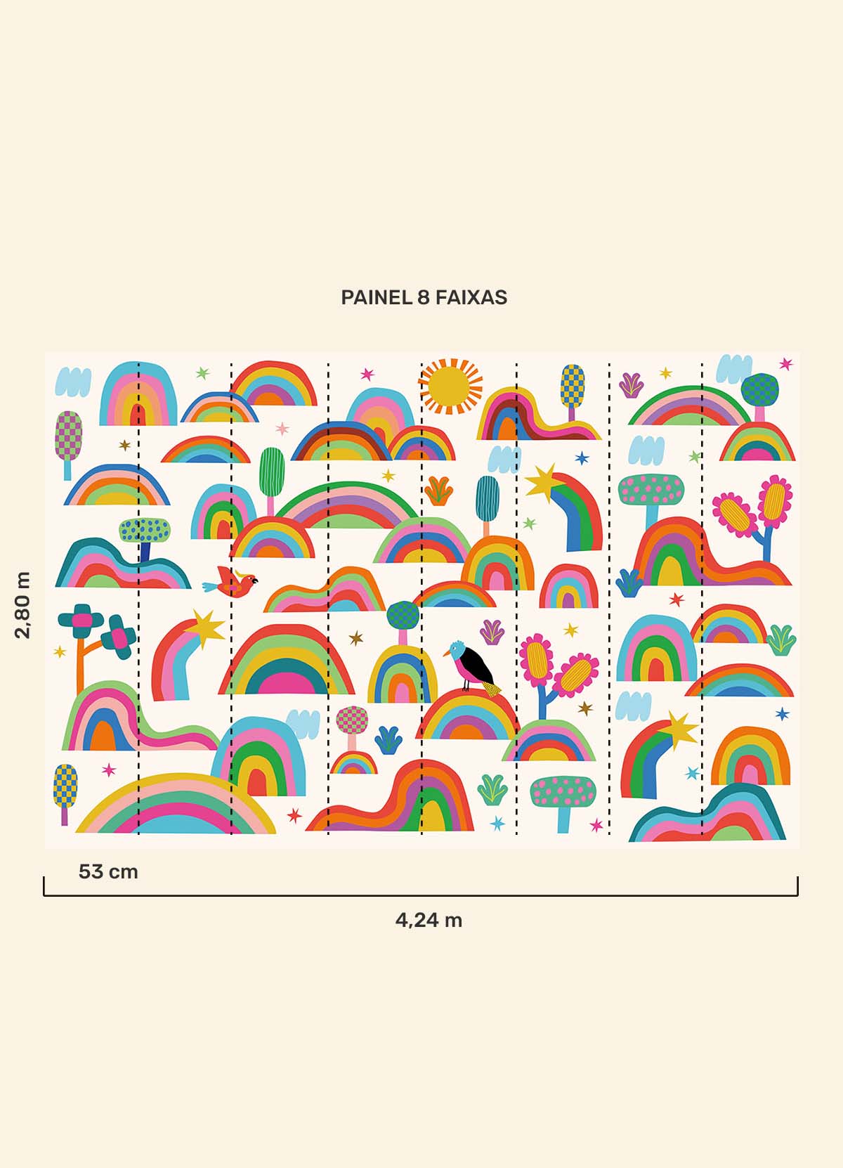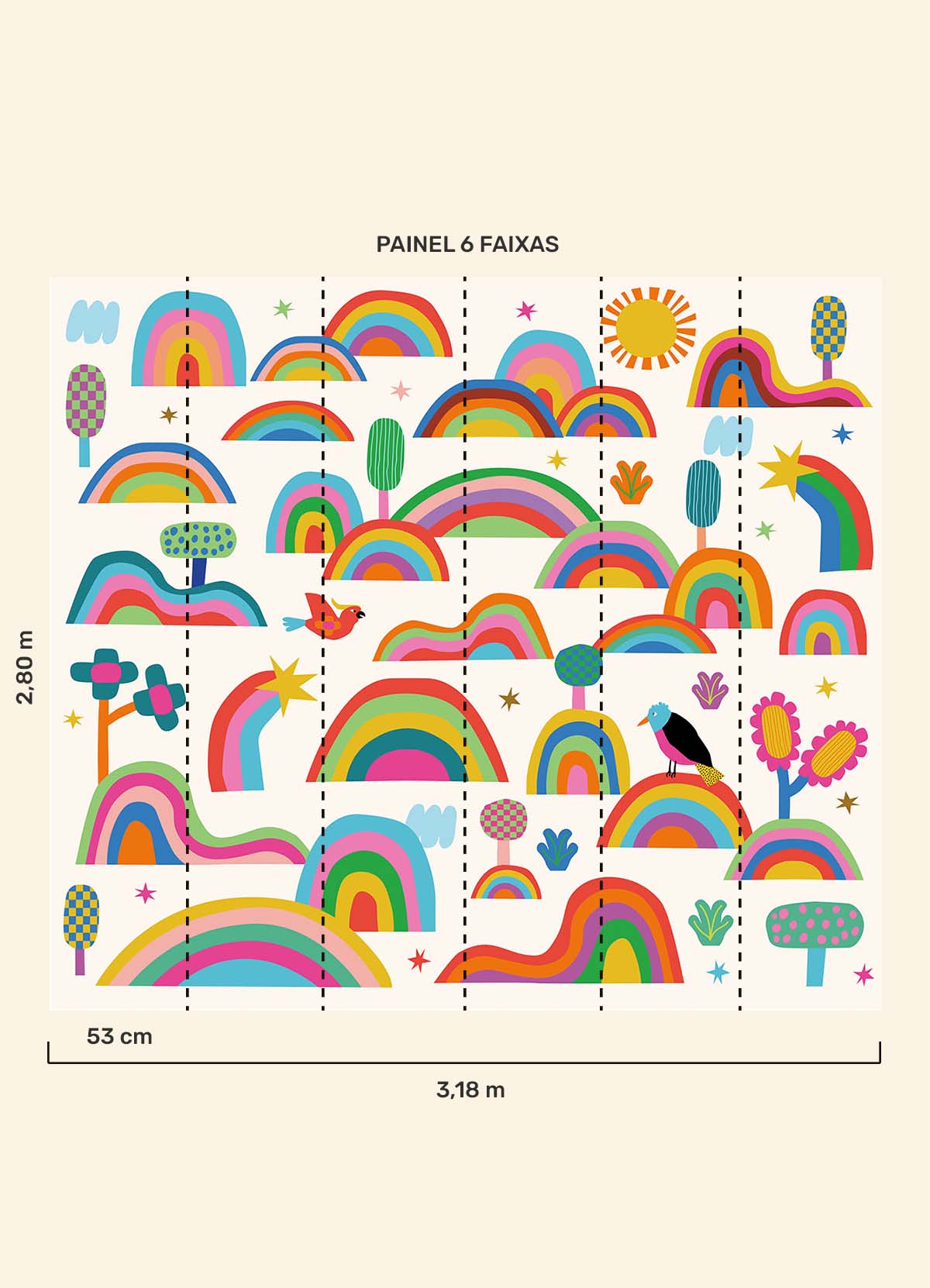 O Papel de Parede Arco-íris Fantástico é como um portal da magia: permite que as cores, aventuras e o carinho invadam o quartinho infantil com alegria e encanto. Além de ser um item que transforma a decoração, nosso papel de parede infantil é de base vinílica e impressão de alta definição, para que você tenha um item de muita qualidade para decorar o quarto infantil. O acabamento é fosco e a textura suave, substituindo pinturas com tinta de forma mais prática e durável. E a junção das faixas não é sobreposta, mas alinhada lado a lado. Consulte a disponibilidade de estoque a pronta entrega.