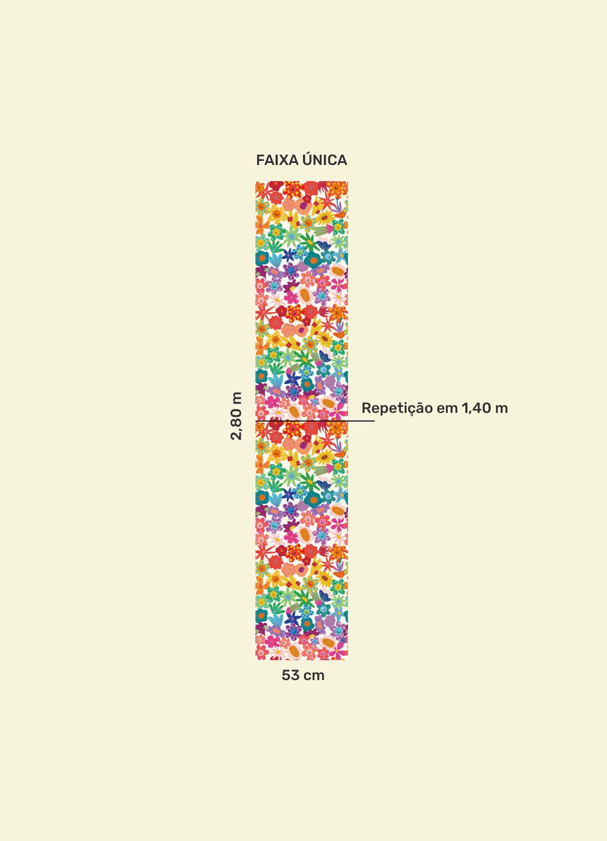 O Papel de Parede Arco-íris Floral é como um portal da magia: permite que as cores, aventuras e o carinho invadam o quartinho infantil com alegria e encanto. Além de ser um item que transforma a decoração, nosso Papel de Parede infantil é de base vinílica e impressão de alta definição, para que você tenha um item de muita qualidade para decorar o quarto infantil. O acabamento é fosco e a textura suave, substituindo pinturas com tinta de forma mais prática e durável. E a junção das faixas não é sobreposta, mas alinhada lado a lado. Consulte a disponibilidade de estoque a pronta entrega.