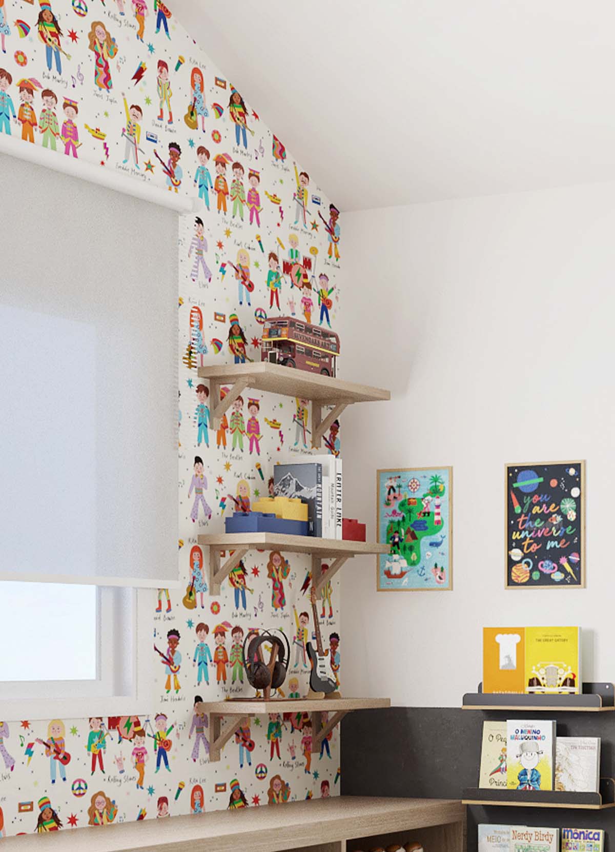 O Papel de Parede Astros da Música é como um portal da magia: permite que as cores, aventuras e o carinho invadam o quartinho infantil com alegria e encanto. Além de ser um item que transforma a decoração, nosso Papel de Parede infantil é de base vinílica e impressão de alta definição, para que você tenha um item de muita qualidade para decorar o quarto infantil. O acabamento é fosco e a textura suave, substituindo pinturas com tinta de forma mais prática e durável. E a junção das faixas não é sobreposta, mas alinhada lado a lado. Consulte a disponibilidade de estoque a pronta entrega.