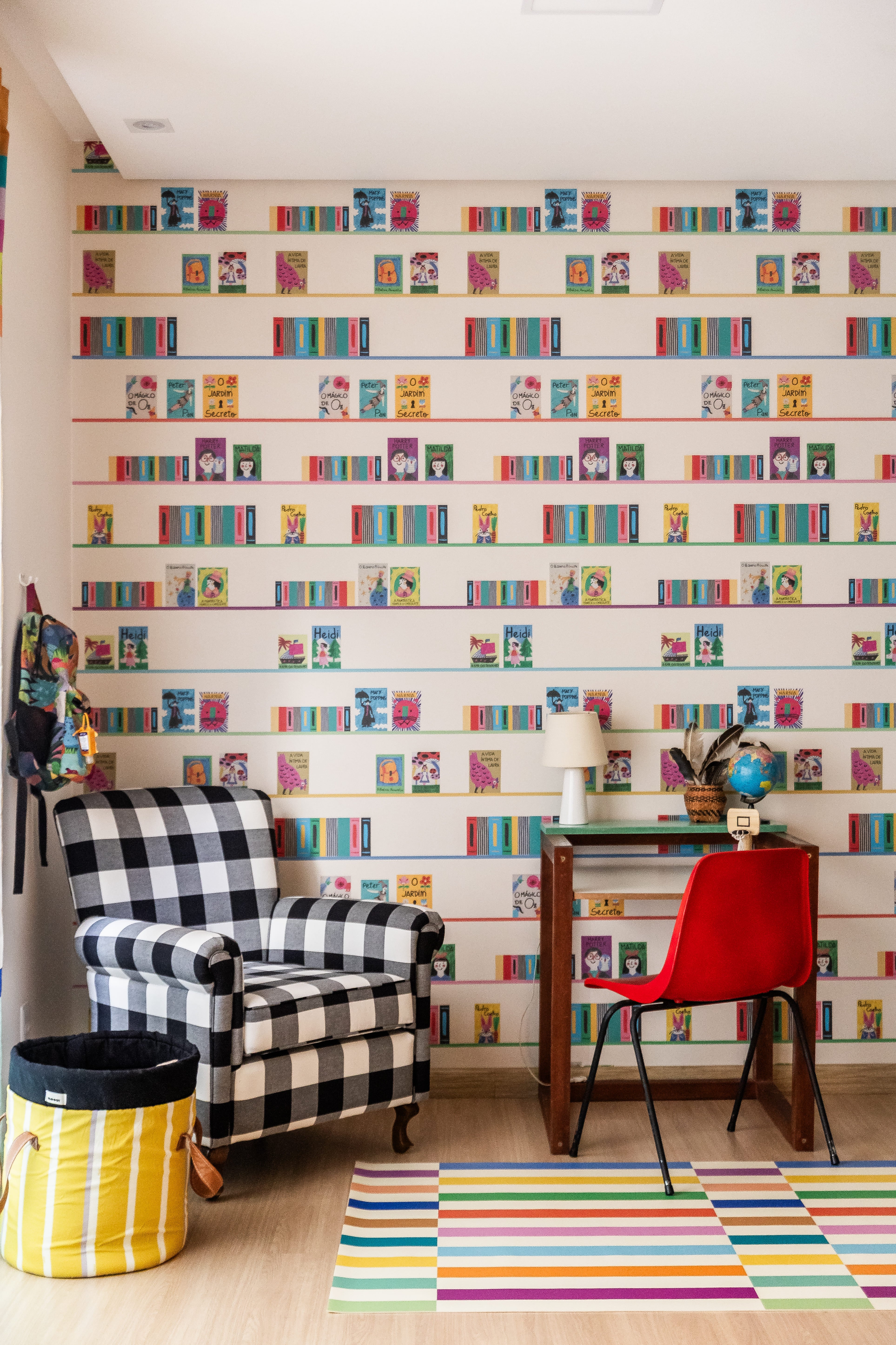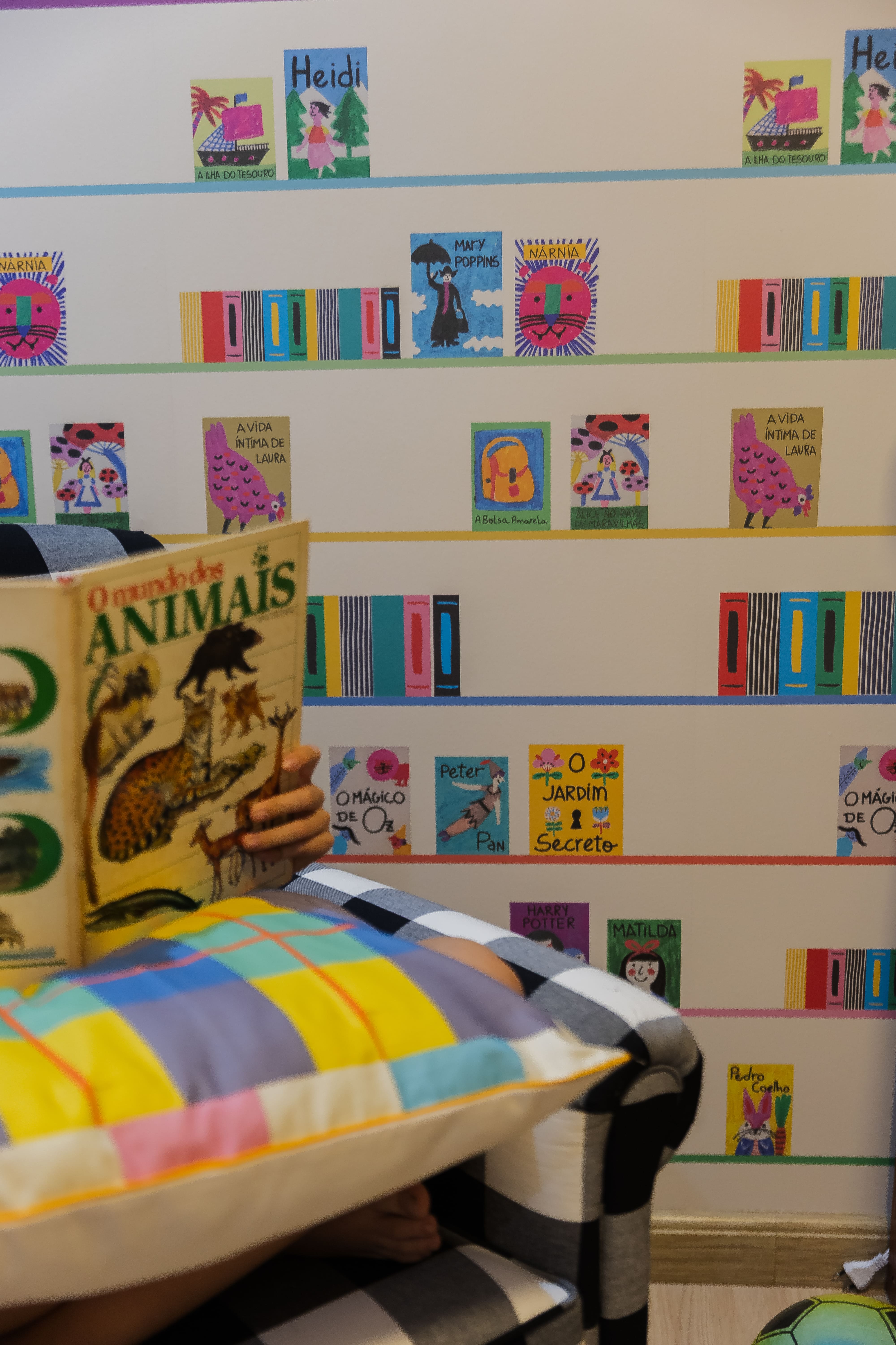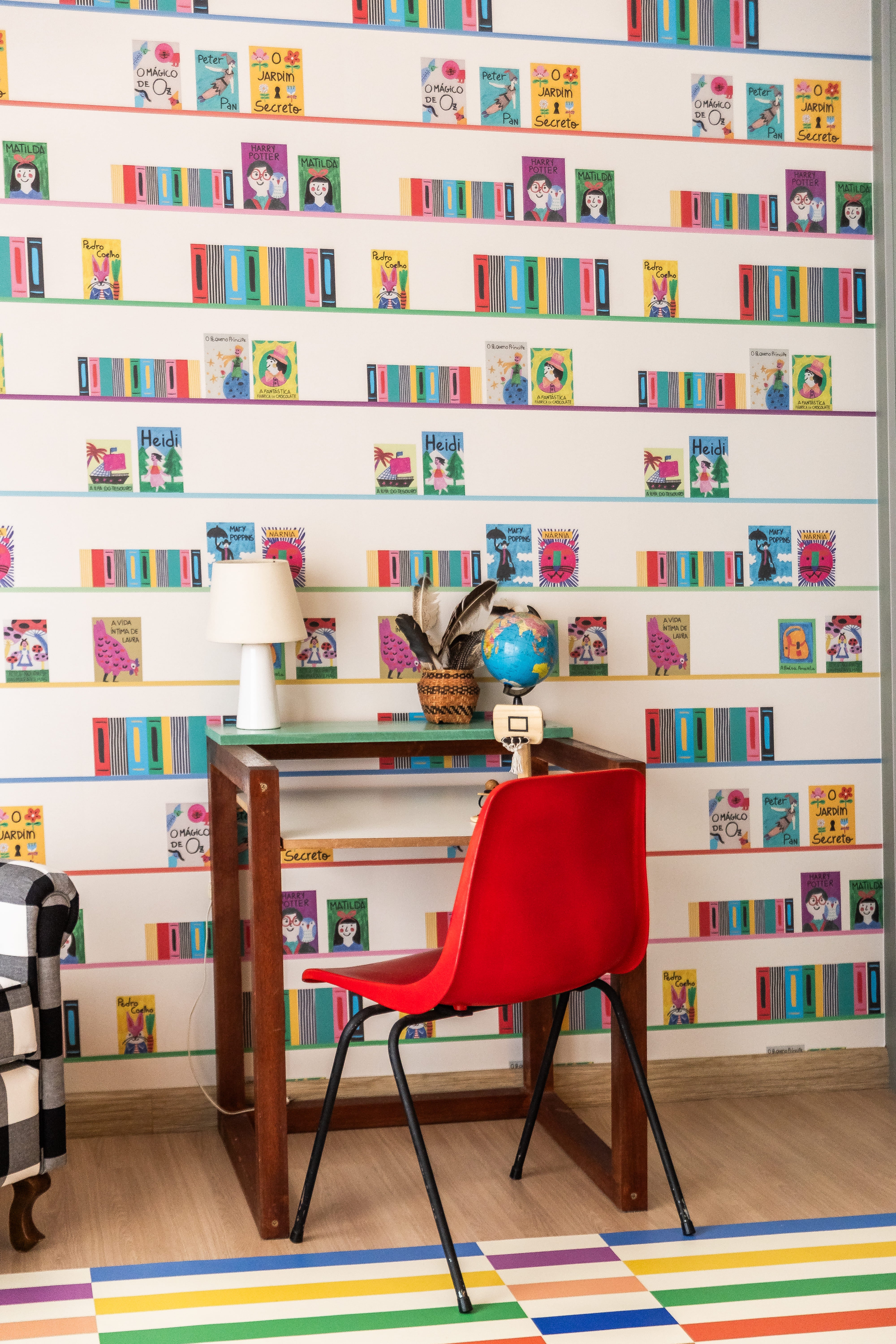 O Papel de Parede Biblioteca de Criança é como um portal da magia: permite que as cores, aventuras e o carinho invadam o quartinho infantil com alegria e encanto. Além de ser um item que transforma a decoração, nosso Papel de Parede infantil é de base vinílica e impressão de alta definição, para que você tenha um item de muita qualidade para decorar o quarto infantil. O acabamento é fosco e a textura suave, substituindo pinturas com tinta de forma mais prática e durável. E a junção das faixas não é sobreposta, mas alinhada lado a lado. Consulte a disponibilidade de estoque a pronta entrega.