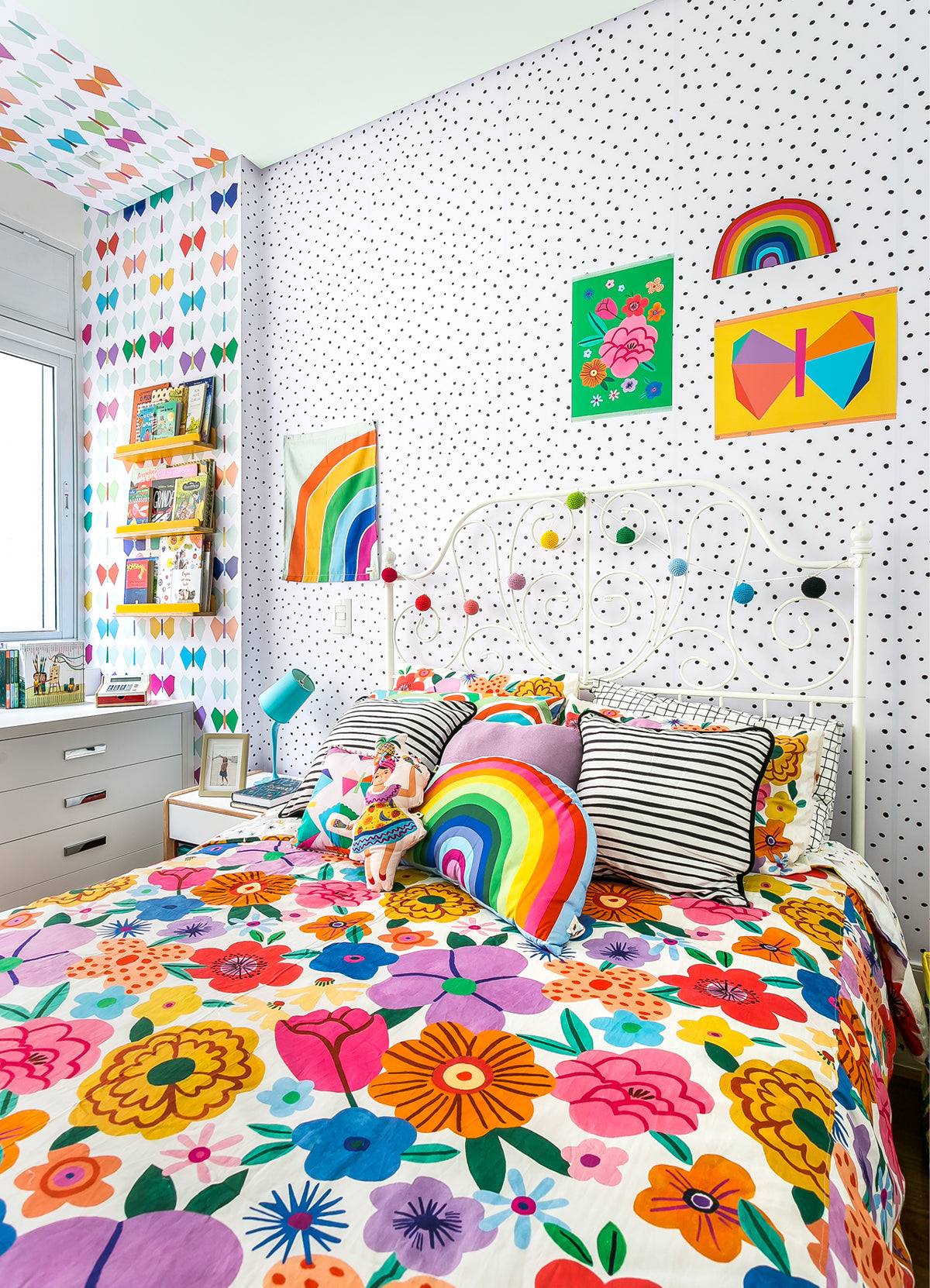O Papel de Parede Bolinhas é como um portal da magia: permite que as cores, aventuras e o carinho invadam o quartinho infantil com alegria e encanto. Além de ser um item que transforma a decoração, nosso Papel de Parede infantil é de base vinílica e impressão de alta definição, para que você tenha um item de muita qualidade para decorar o quarto infantil. O acabamento é fosco e a textura suave, substituindo pinturas com tinta de forma mais prática e durável. E a junção das faixas não é sobreposta, mas alinhada lado a lado. Consulte a disponibilidade de estoque a pronta entrega.