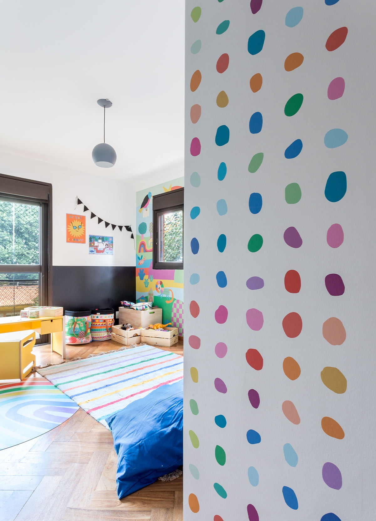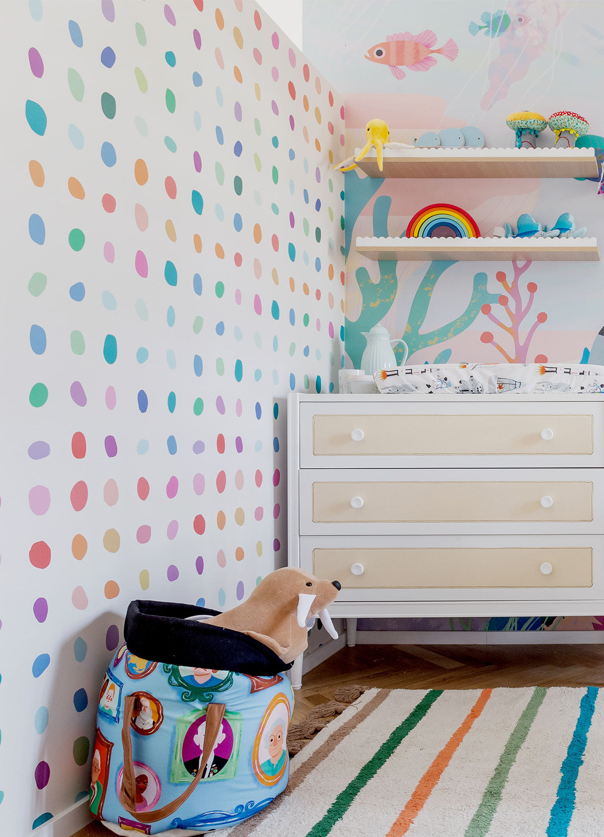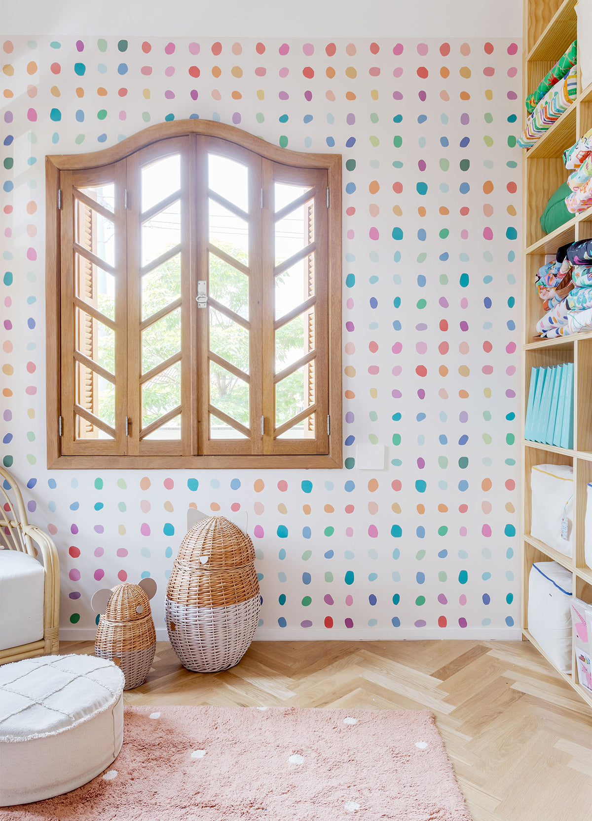 O Papel de Parede Bolinhas Mágicas é como um portal da magia: permite que as cores, aventuras e o carinho invadam o quartinho infantil com alegria e encanto. Além de ser um item que transforma a decoração, nosso Papel de Parede infantil é de base vinílica e impressão de alta definição, para que você tenha um item de muita qualidade para decorar o quarto infantil. O acabamento é fosco e a textura suave, substituindo pinturas com tinta de forma mais prática e durável. E a junção das faixas não é sobreposta, mas alinhada lado a lado. Consulte a disponibilidade de estoque a pronta entrega.