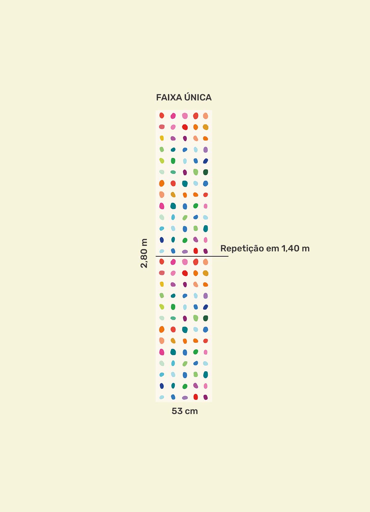 *Se você for comprar mais de uma faixa do papel de parede MOOUI, elas devem pertencer ao mesmo pedido. Lotes diferentes têm variações de cores e encaixes e não nos responsabilizamos por estas diferenças.