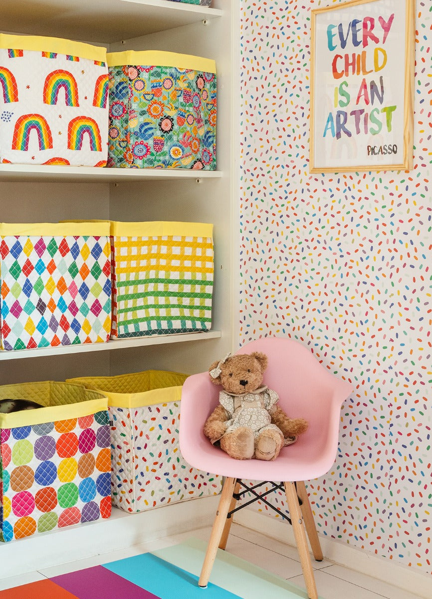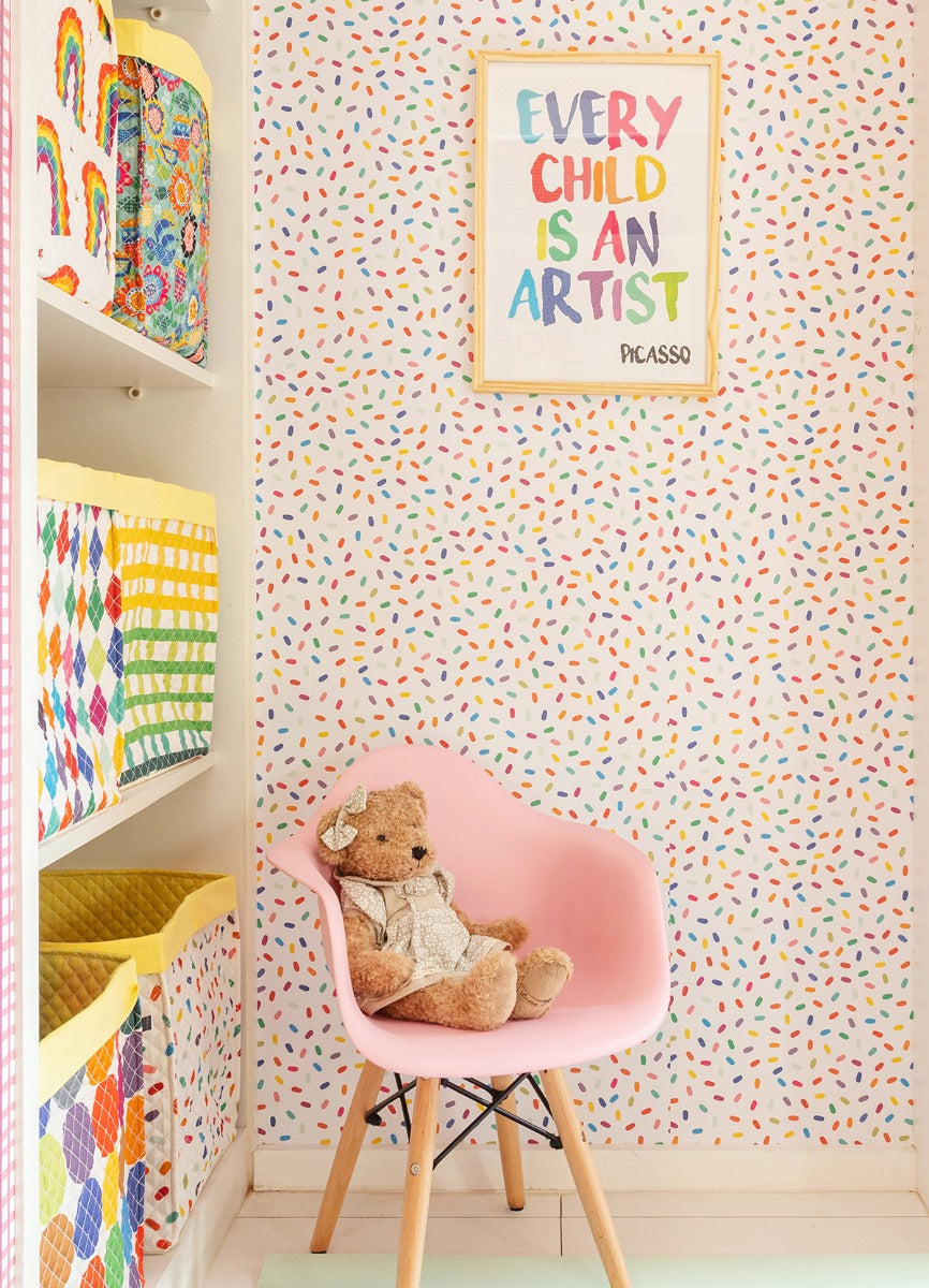 O Papel de Parede Caleidoscópio é como um portal da magia: permite que as cores, aventuras e o carinho invadam o quartinho infantil com alegria e encanto. Além de ser um item que transforma a decoração, nosso Papel de Parede infantil é de base vinílica e impressão de alta definição, para que você tenha um item de muita qualidade para decorar o quarto infantil. O acabamento é fosco e a textura suave, substituindo pinturas com tinta de forma mais prática e durável. E a junção das faixas não é sobreposta, mas alinhada lado a lado. Consulte a disponibilidade de estoque a pronta entrega.