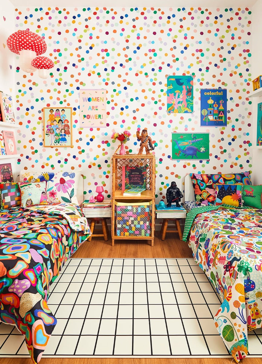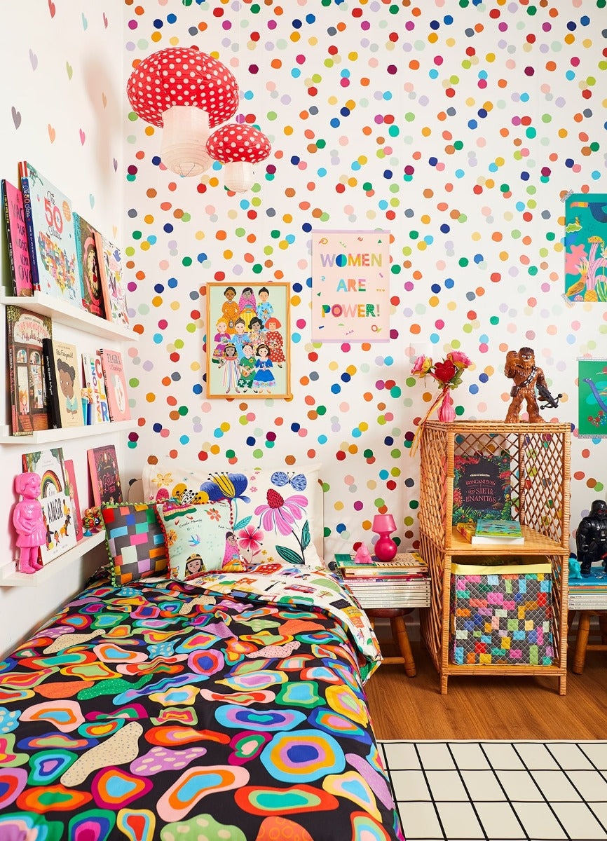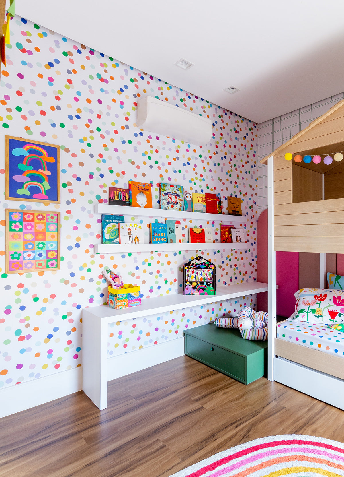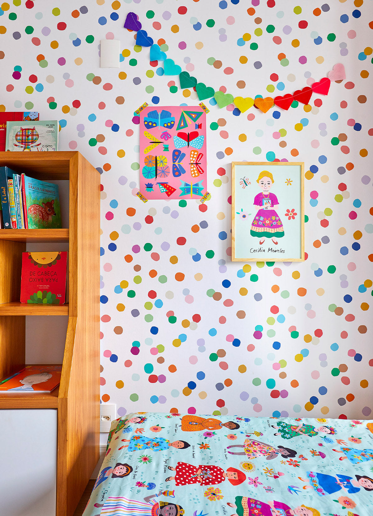 O Papel de Parede Confetti é como um portal da magia: permite que as cores, aventuras e o carinho invadam o quartinho infantil com alegria e encanto. Além de ser um item que transforma a decoração, nosso papel de parede infantil é de base vinílica e impressão de alta definição, para que você tenha um item de muita qualidade para decorar o quarto infantil. O acabamento é fosco e a textura suave, substituindo pinturas com tinta de forma mais prática e durável. E a junção das faixas não é sobreposta, mas alinhada lado a lado. Consulte a disponibilidade de estoque a pronta entrega.