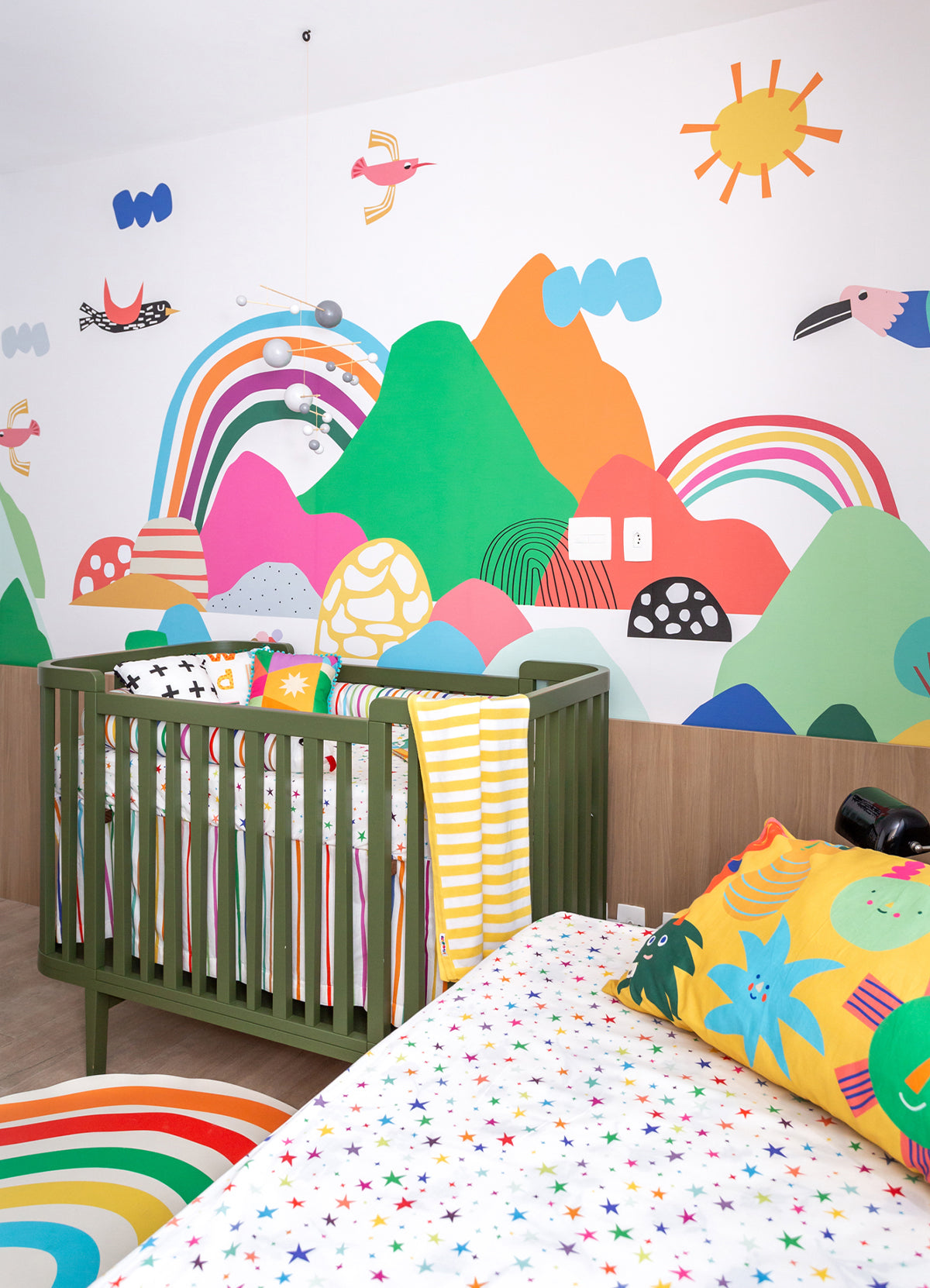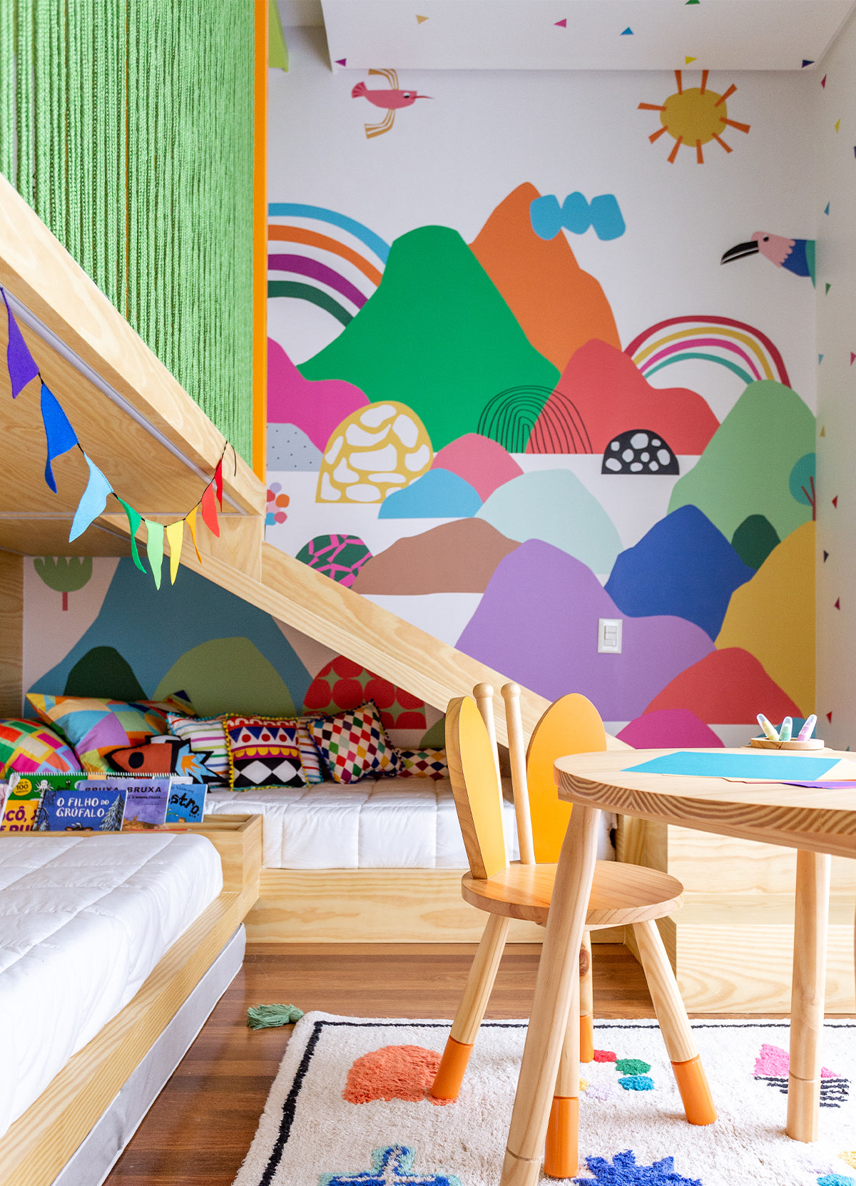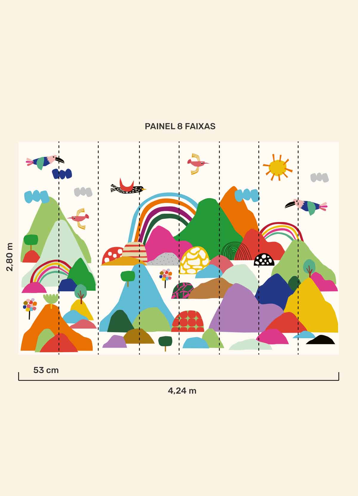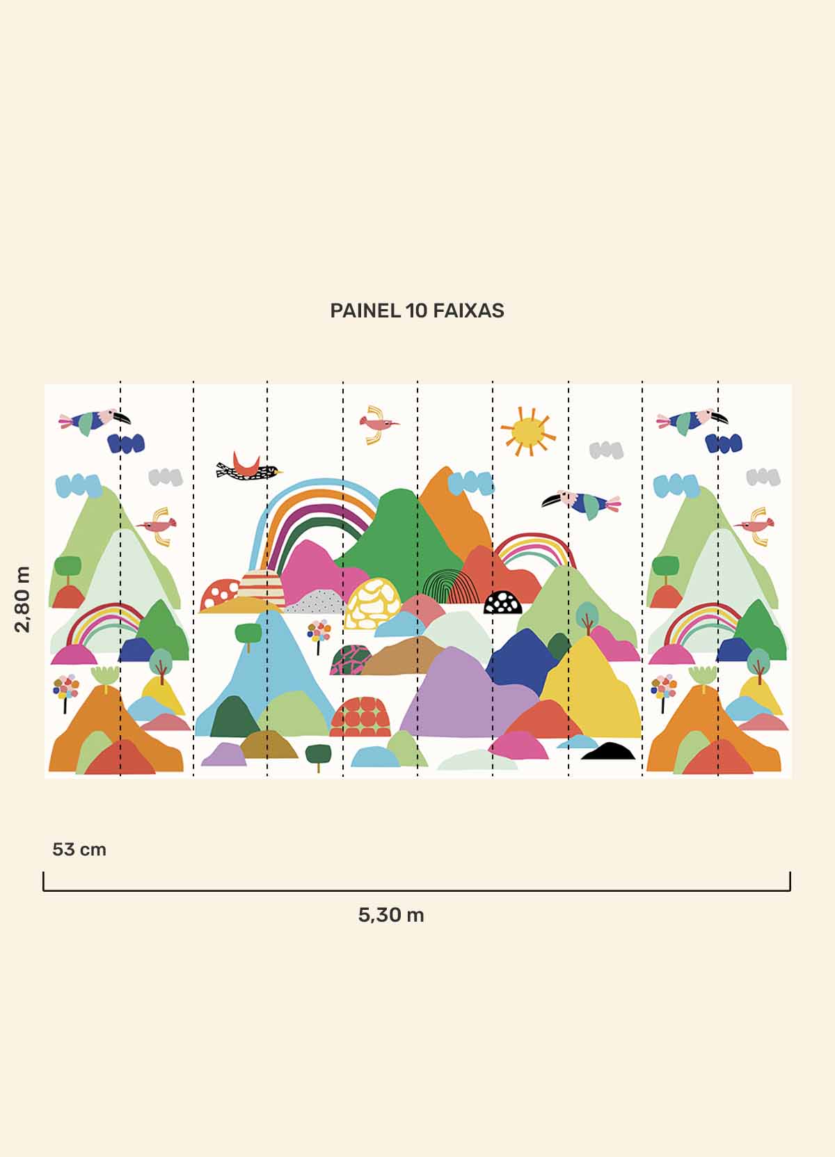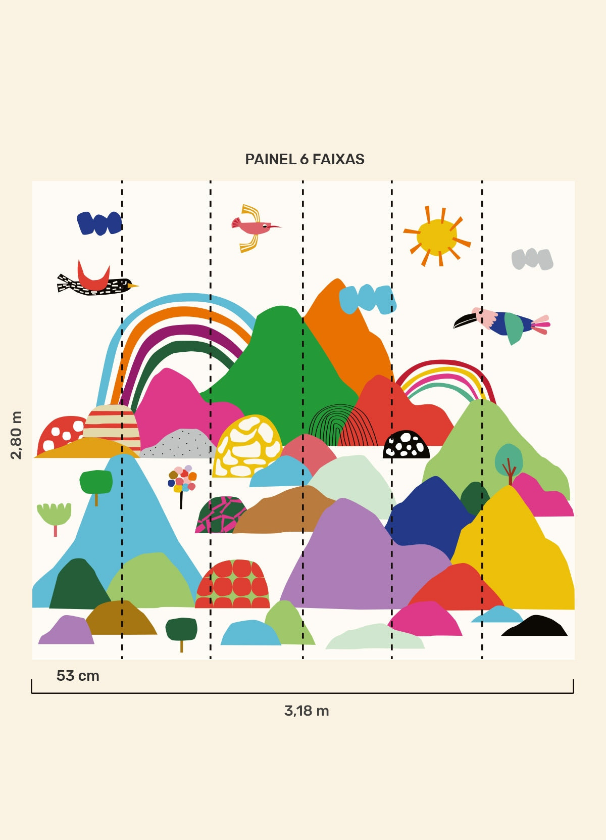 O Papel de Parede Cordilheiras é como um portal da magia: permite que as cores, aventuras e o carinho invadam o quartinho infantil com alegria e encanto. Além de ser um item que transforma a decoração, nosso papel de parede infantil é de base vinílica e impressão de alta definição, para que você tenha um item de muita qualidade para decorar o quarto infantil. O acabamento é fosco e a textura suave, substituindo pinturas com tinta de forma mais prática e durável. E a junção das faixas não é sobreposta, mas alinhada lado a lado. Consulte a disponibilidade de estoque a pronta entrega.