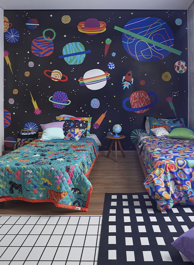 O Papel de Parede Cosmos é como um portal da magia: permite que as cores, aventuras e o carinho invadam o quartinho infantil com alegria e encanto. Além de ser um item que transforma a decoração, nosso papel de parede infantil é de base vinílica e impressão de alta definição, para que você tenha um item de muita qualidade para decorar o quarto infantil. O acabamento é fosco e a textura suave, substituindo pinturas com tinta de forma mais prática e durável. E a junção das faixas não é sobreposta, mas alinhada lado a lado. Consulte a disponibilidade de estoque a pronta entrega.