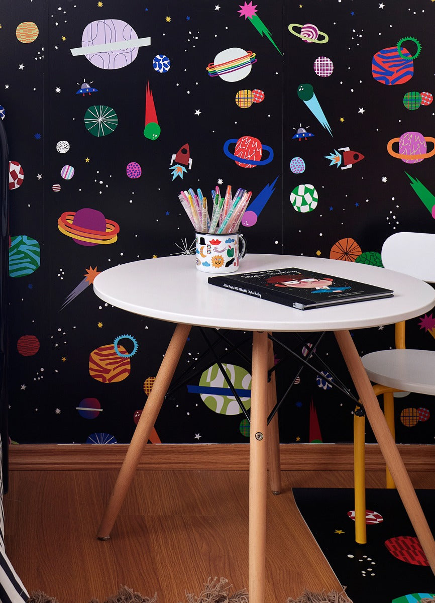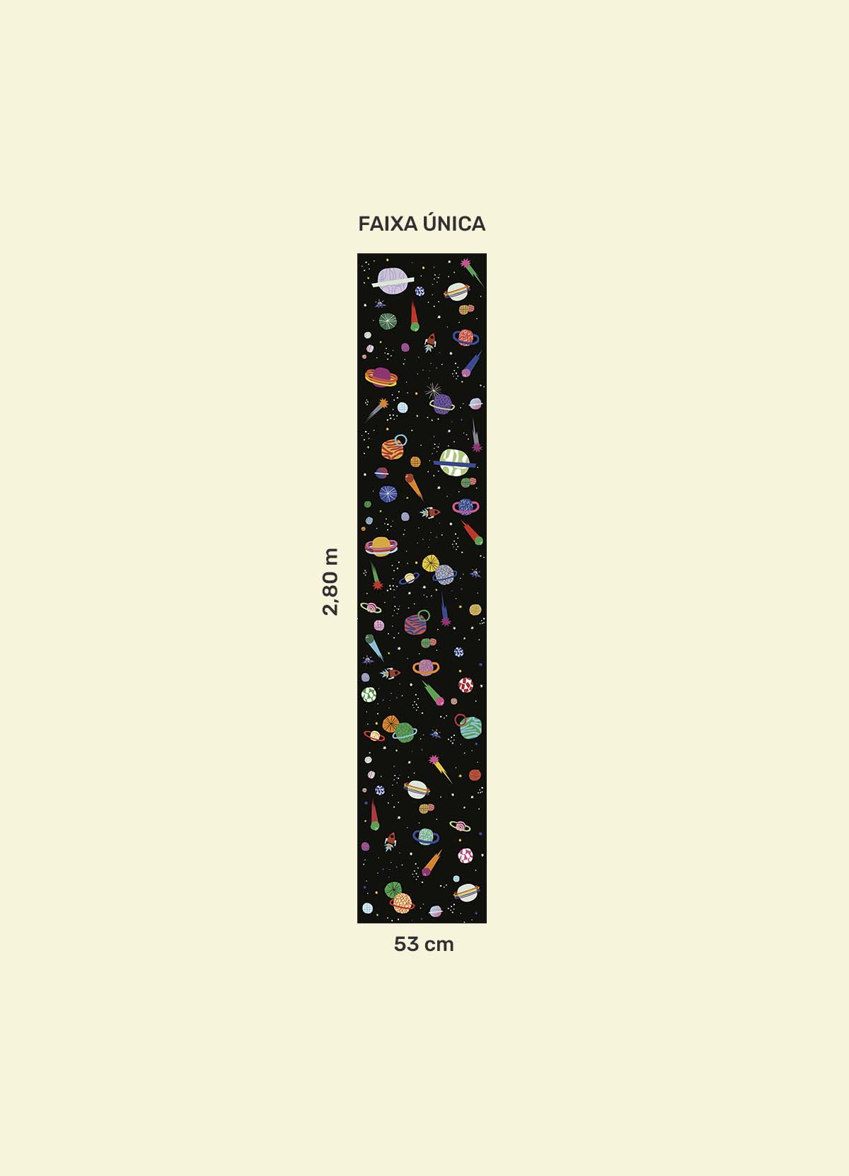O Papel de Parede Cosmos Preto é como um portal da magia: permite que as cores, aventuras e o carinho invadam o quartinho infantil com alegria e encanto. Além de ser um item que transforma a decoração, nosso Papel de Parede infantil é de base vinílica e impressão de alta definição, para que você tenha um item de muita qualidade para decorar o quarto infantil. O acabamento é fosco e a textura suave, substituindo pinturas com tinta de forma mais prática e durável. E a junção das faixas não é sobreposta, mas alinhada lado a lado. Consulte a disponibilidade de estoque a pronta entrega.