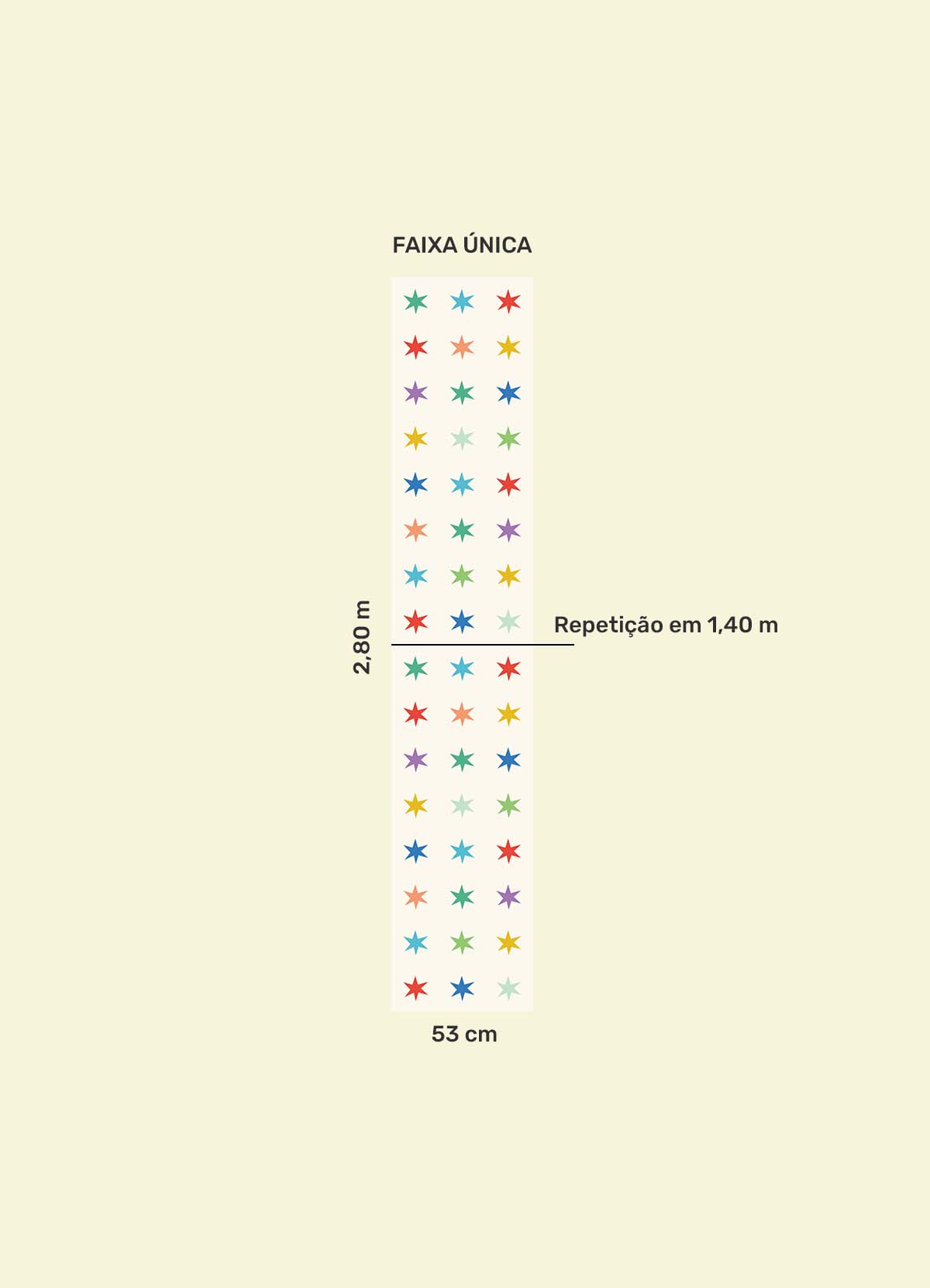 O Papel de Parede Estrela Colorida é como um portal da magia: permite que as cores, aventuras e o carinho invadam o quartinho infantil com alegria e encanto. Além de ser um item que transforma a decoração, nosso Papel de Parede infantil é de base vinílica e impressão de alta definição, para que você tenha um item de muita qualidade para decorar o quarto infantil. O acabamento é fosco e a textura suave, substituindo pinturas com tinta de forma mais prática e durável. E a junção das faixas não é sobreposta, mas alinhada lado a lado. Consulte a disponibilidade de estoque a pronta entrega.