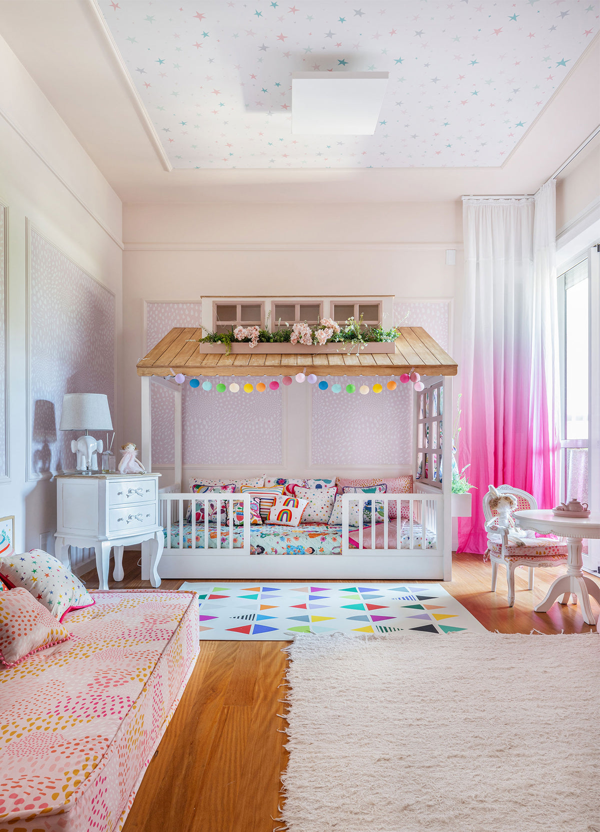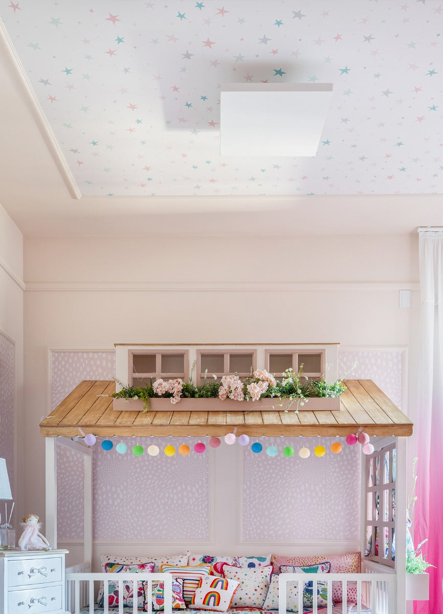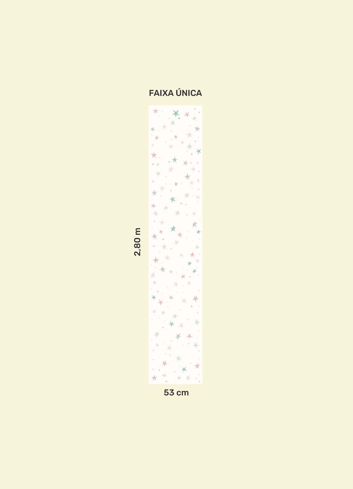 O Papel de Parede Estrelas Pastel é como um portal da magia: permite que as cores, aventuras e o carinho invadam o quartinho infantil com alegria e encanto. Além de ser um item que transforma a decoração, nosso Papel de Parede infantil é de base vinílica e impressão de alta definição, para que você tenha um item de muita qualidade para decorar o quarto infantil. O acabamento é fosco e a textura suave, substituindo pinturas com tinta de forma mais prática e durável. E a junção das faixas não é sobreposta, mas alinhada lado a lado. Consulte a disponibilidade de estoque a pronta entrega.