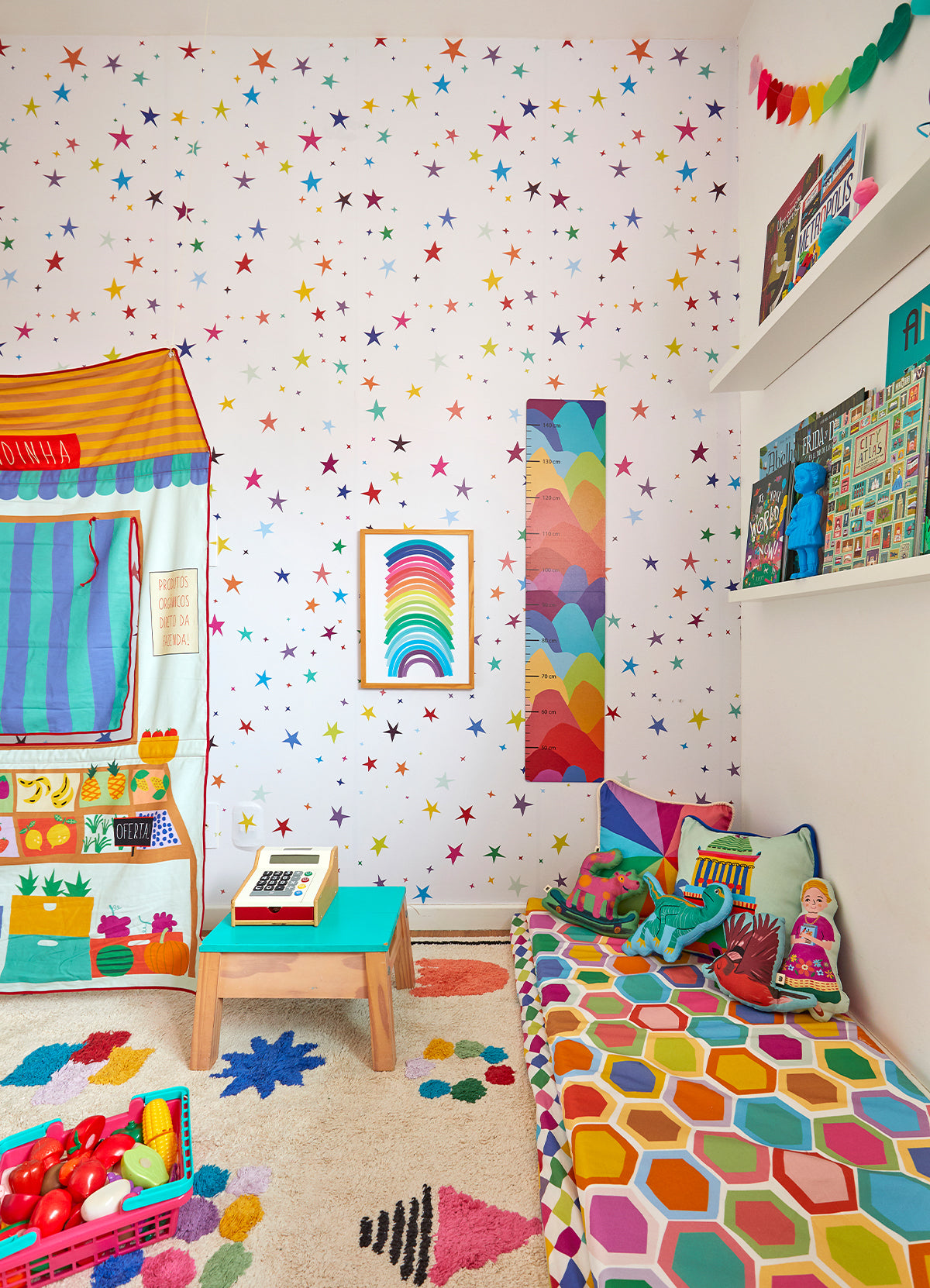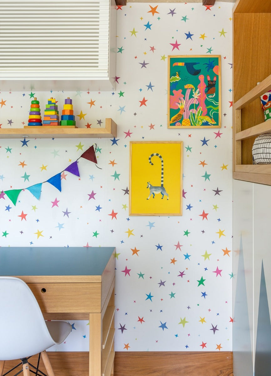 O Papel de Parede Estrelas é como um portal da magia: permite que as cores, aventuras e o carinho invadam o quartinho infantil com alegria e encanto. Além de ser um item que transforma a decoração, nosso Papel de Parede infantil é de base vinílica e impressão de alta definição, para que você tenha um item de muita qualidade para decorar o quarto infantil. O acabamento é fosco e a textura suave, substituindo pinturas com tinta de forma mais prática e durável. E a junção das faixas não é sobreposta, mas alinhada lado a lado. Consulte a disponibilidade de estoque a pronta entrega.